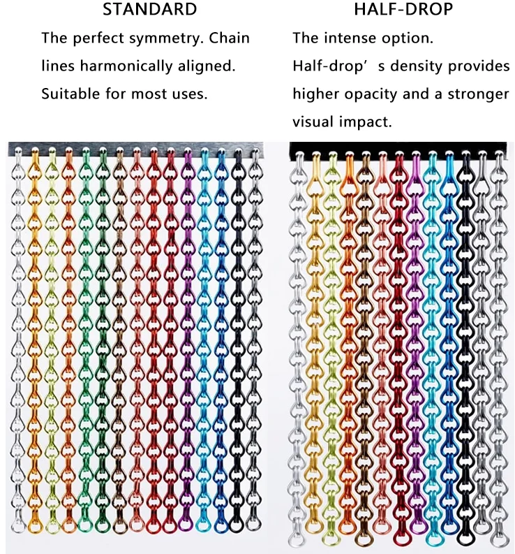 Этот красивый серебряный дизайн штор изготовлен из высокого качества анодированные алюминиевые цепочки, что висит из металла трек, звеньев цепи может быть удален и легко настроить трость на короткой длины.
