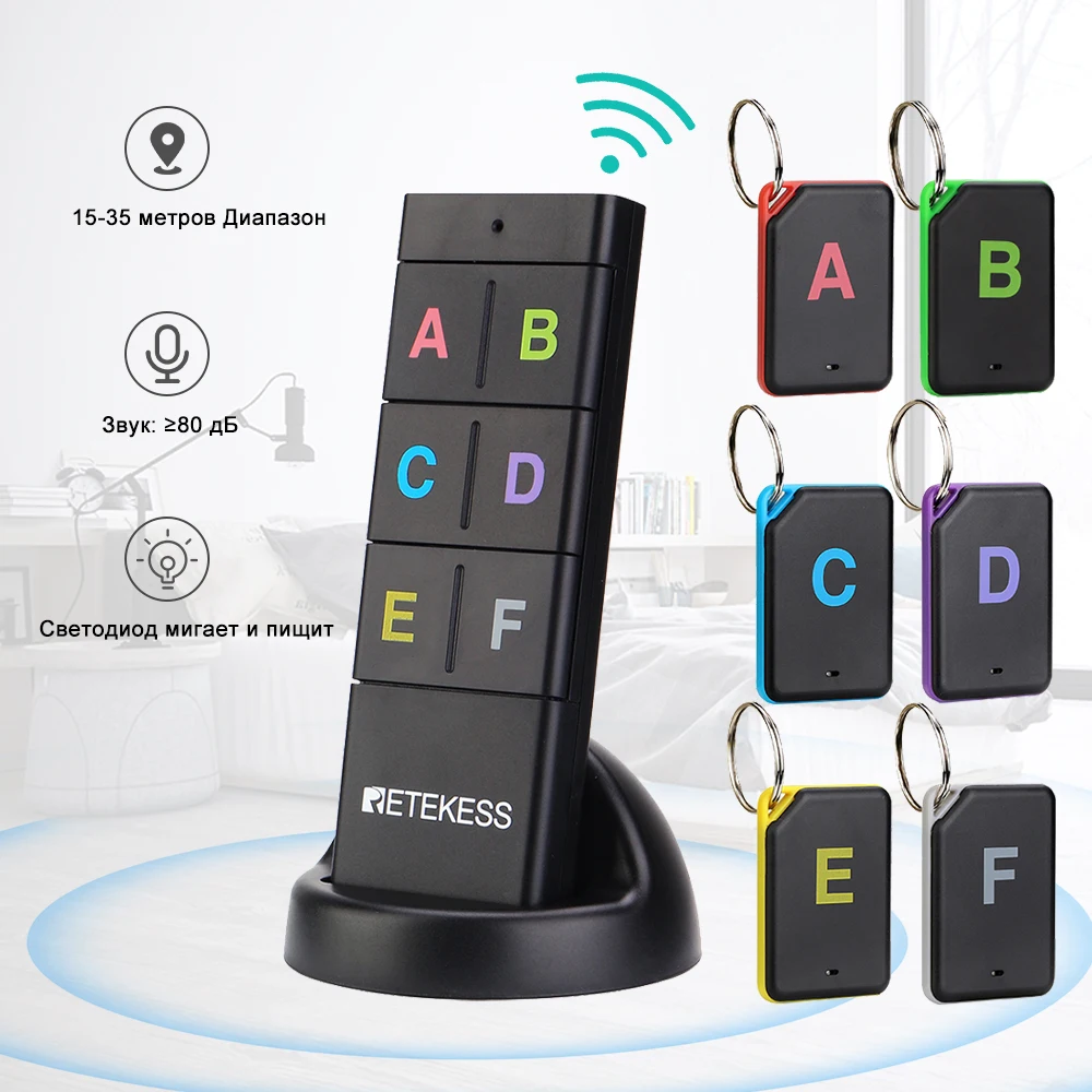 Retekess TH104 Беспроводной поиск ключей РФ Ключевой локатор Отслеживание домашних животных Кошелек Трекер Пульт дистанционного управления 1 РФ-передатчик 6 Приемник