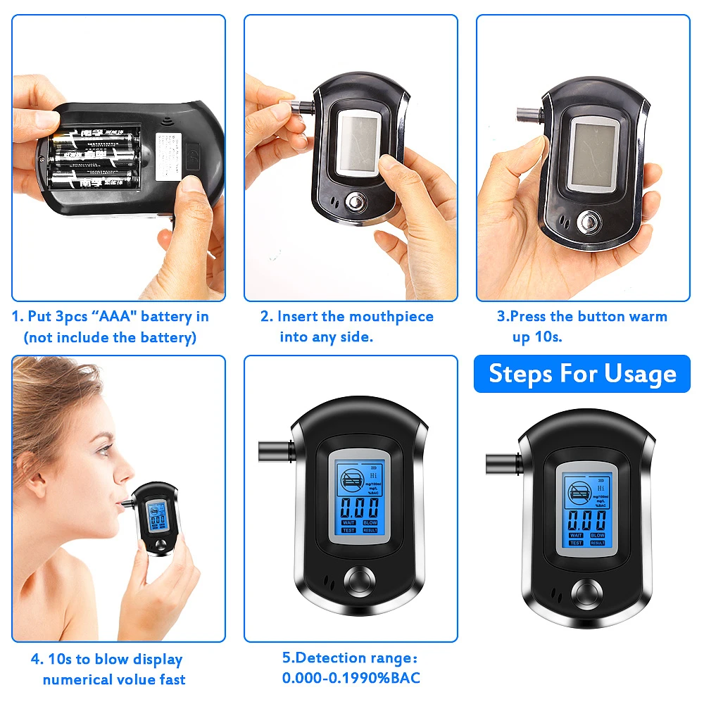 Цифровой алкотестер, профессиональный полицейский мини-анализатор алкоголя AT6000, анализатор дыхания, алкоголя за рулем, ЖК-экран