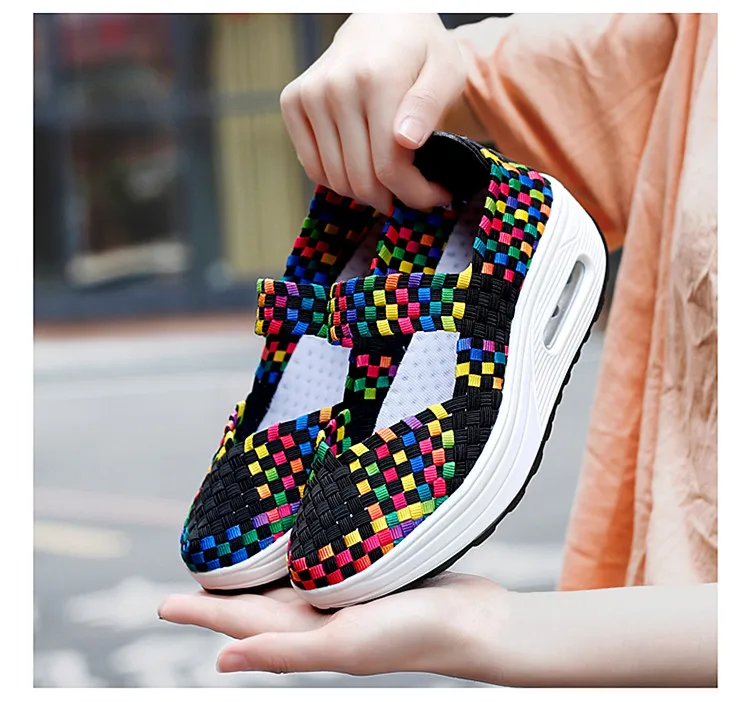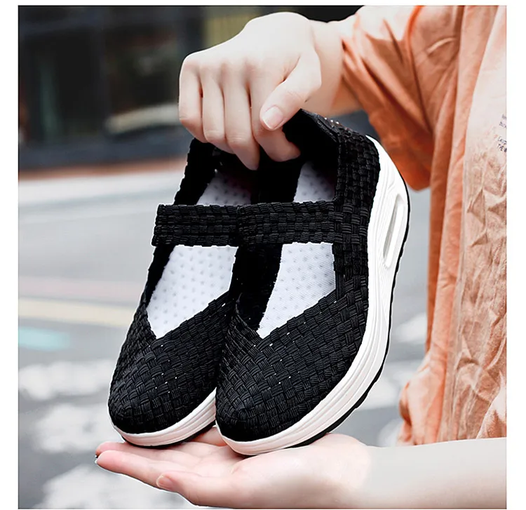 Женская повседневная обувь на плоской подошве; Летняя модная дышащая обувь без застежки на платформе, увеличивающая рост; Быстросохнущая обувь; Большие размеры 35-42