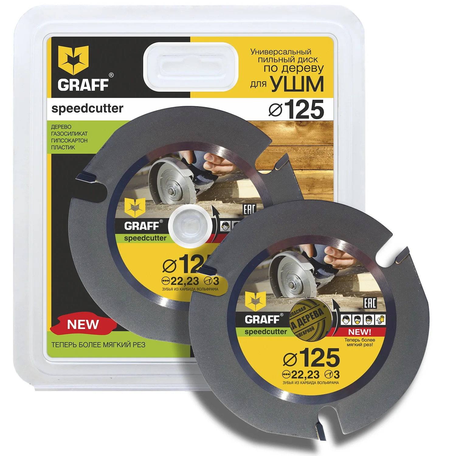 Пила трехзубая дисковая по дереву speedcutter - 125x3,8x22,23 мм с максимальной скоростью вращения 12 200 об.мин. Уникальность данного пильного диска заключается в том что он предназначен для использования в высокооборотистых угловых шлифмашинках, в отличии от своих многозубых собратьев, которые могут использоваться только в стационарных станках. Круг отрезной по дереву - только от GRAFF.