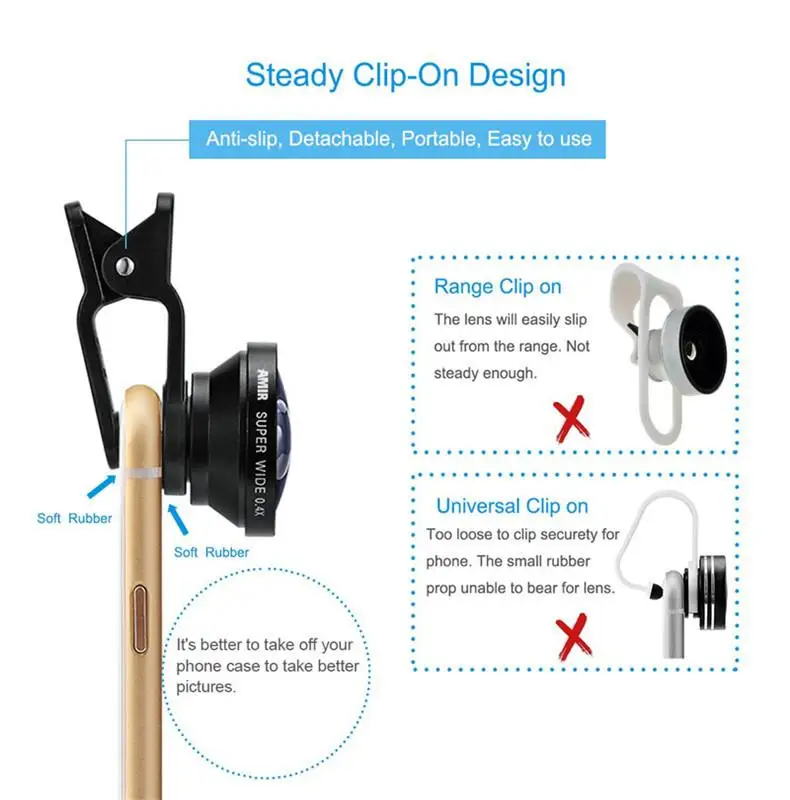0.4x супер широкоугольный объектив: он расширяет поле зрения в большой степени, позволяя интегрировать всю семью или весь член команды в одну фотографию. Очень хороший широкоугольный объектив для iPhone 6 7 и многое другое.