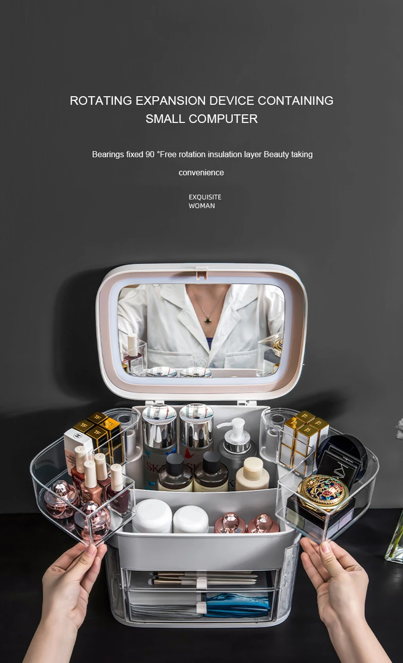 Органайзер для макияжа с зеркалом светодиодный светильник большая емкость Ювелирная стойка косметический Органайзер для ухода за кожей Губная Помада Косметическая коробка для хранения