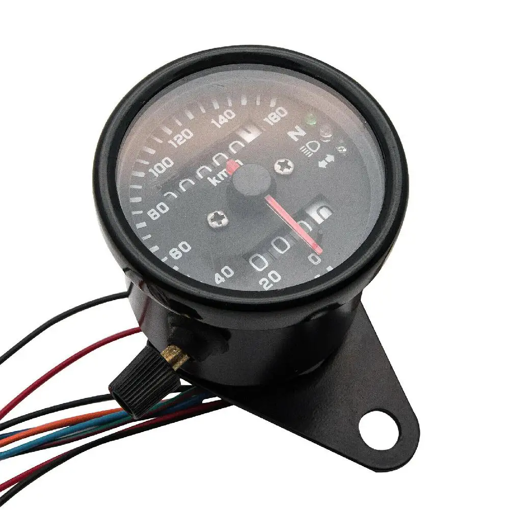 Aftermarket мотоцикл с подсветкой двойной спидометр с индикаторами. Легкий и портативный дизайн круг, общий механический интерфейс скорости. Высокая емкость циферблаты на белом фоне уход за кожей лица, щетка с двойным Красное Длинное индекс. Встроенный небольшой одометр спидометр для того, чтобы показать точный в режиме реального времени пройденное расстояние в милях. Внутренняя подсветка позволяет четко видеть пробег в темное время суток.