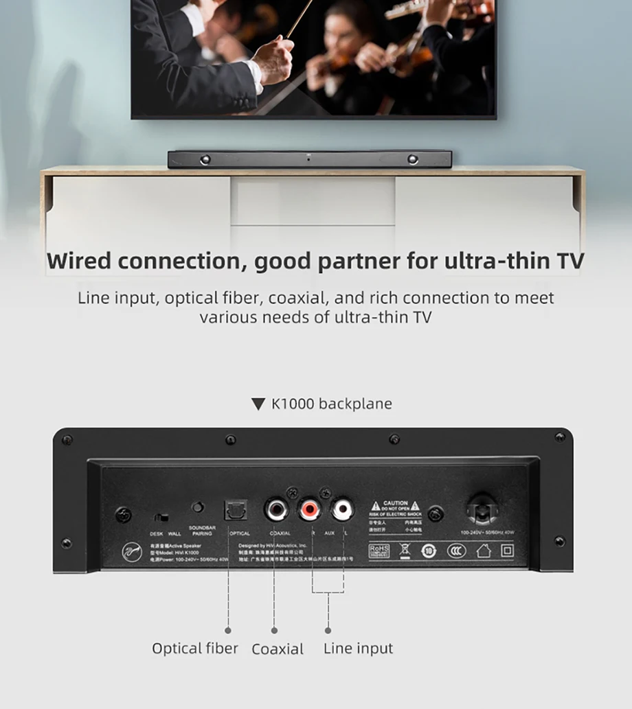 Используйте двустороннюю двухступенчатую звуковую систему, богатый динамик, 8 динамиков создают хороший звук вместе. При подключении к установленному на стене режиму данных, который также может сделать кривую динамика прямой. Высокоскоростная передача, автоматическое подключение После сопряжения, отказ от избыточных соединений, хорошее качество звука Hi-Fi. С отличным переходным откликом и детальной производительностью, он может быть удобен независимо от звука телевизора или профессионального прослушивания и просмотра.