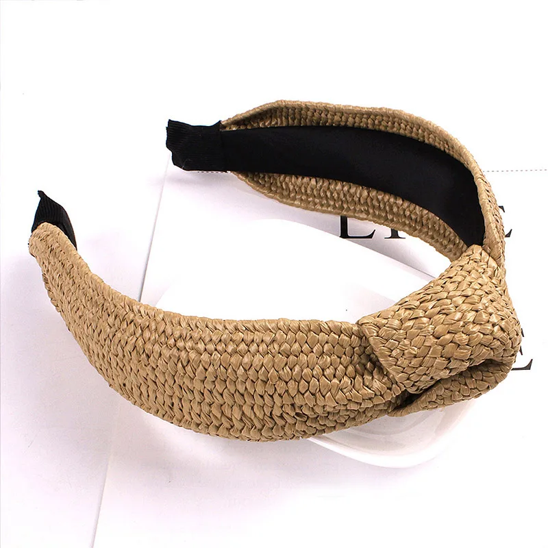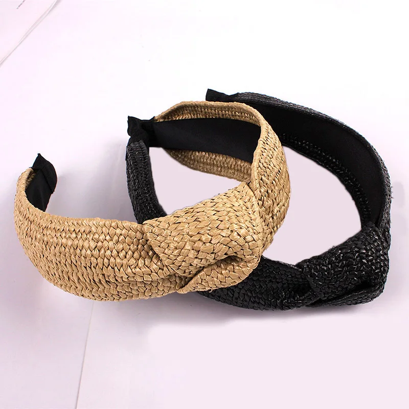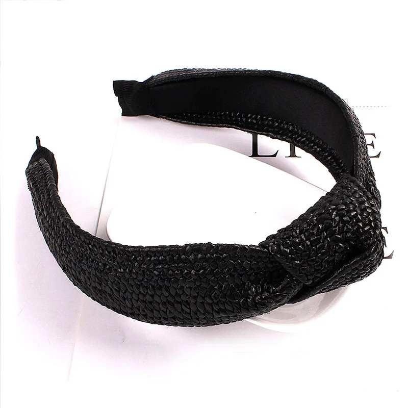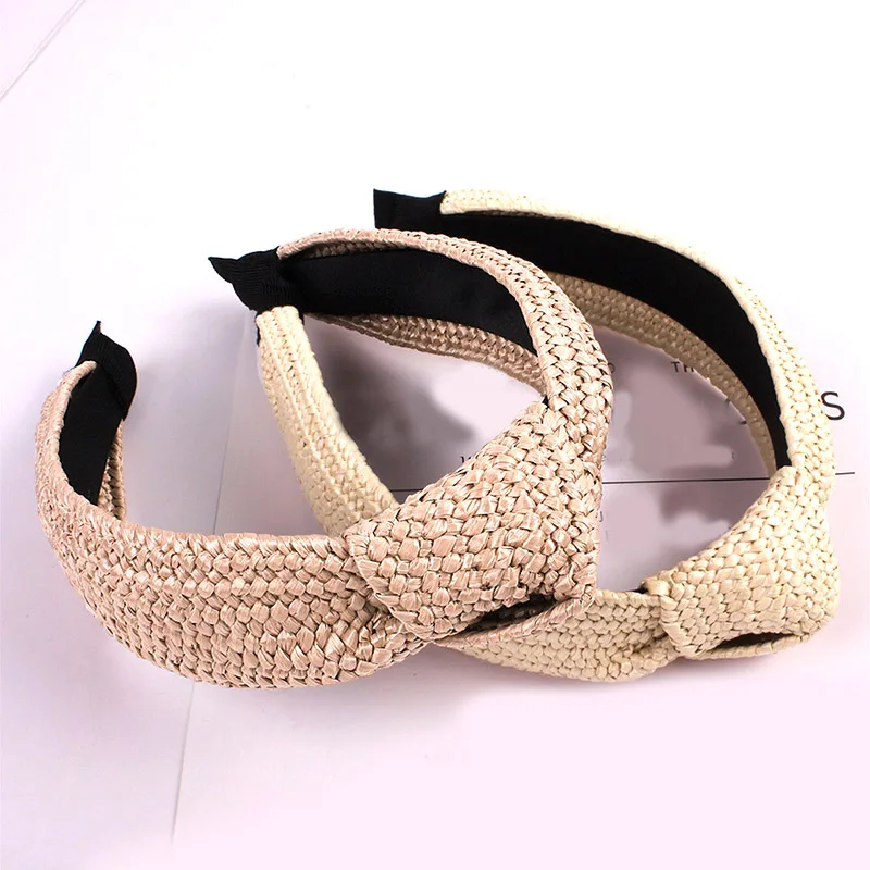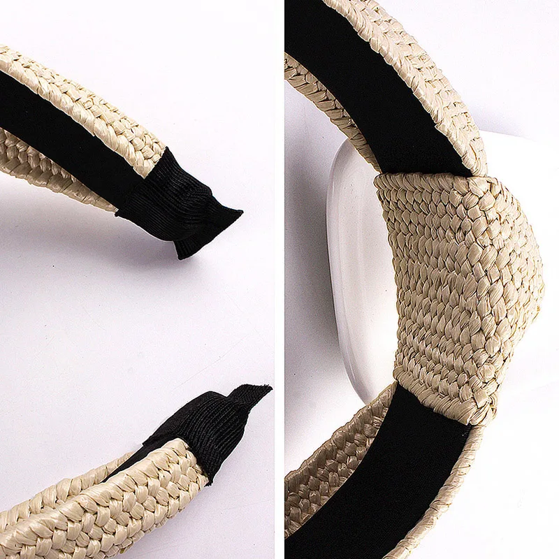 Женская Плетеная соломенная повязка на голову ручной работы, широкая обруч для волос в богемном стиле