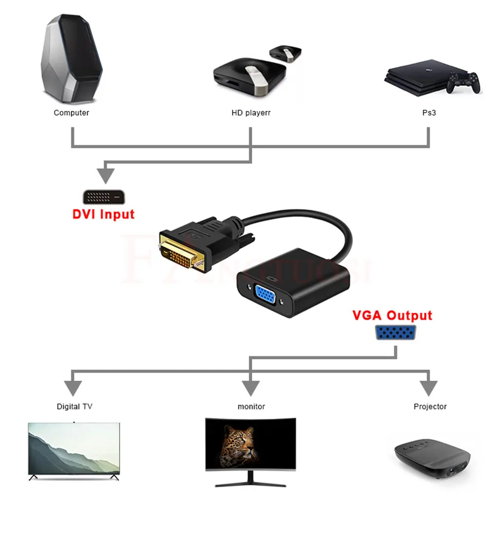 FANGTUOSI HD 1080P DVI Male to VGA Female Adapte 24 + 1 25Pin Male to 15Pin Female кабель конвертер для ПК компьютера HDTV Monitor