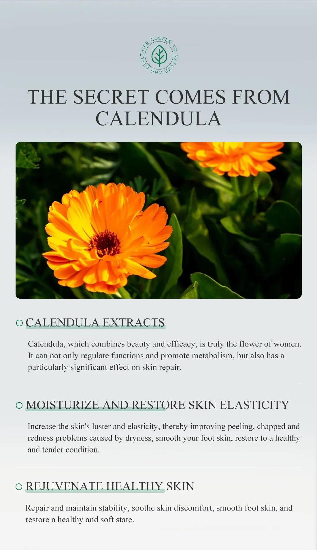 Текстура увлажняет и легко распределяется по стопе. Просто нанесите немного, он может впитаться кожей, чтобы сохранить увлажнение слой за слоем. Он содержит эссенцию календулы, которая пополняет питание и влагу, делает его увлажняющим и нежным. Между тем, он может помочь разгладить огрубевшую кожу, чтобы увеличить нежность кожи, что позволяет легко показать ваши нежные и влажные красивые ноги.