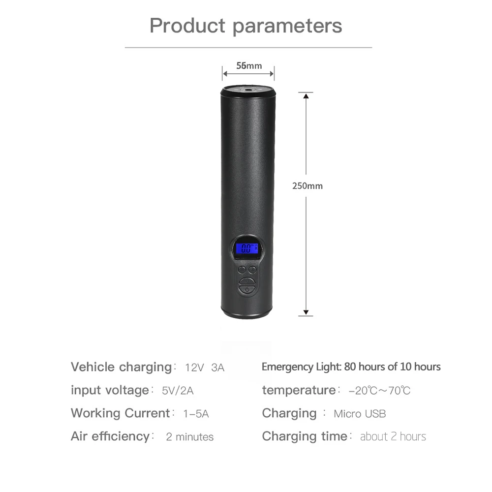 Made from Stainless steel & built-in lithium battery: The rechargeable electric pump can be inflated for emergency.1.5 hours fast charging, the battery in the full charging could inflate an empty tire.