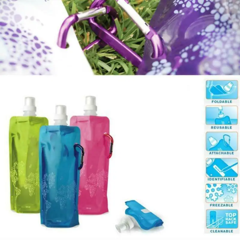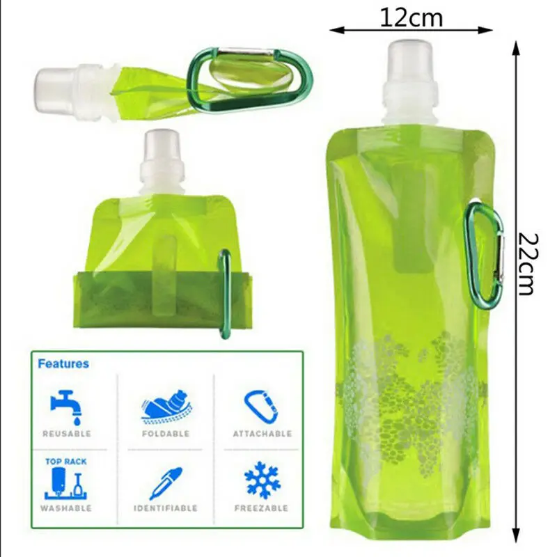 Складные бутылки для воды 480 мл Защита окружающей среды Складные портативные спортивные бутылки для воды для походов и кемпинга Тип посуды: бутылки для воды Стиль: спортивный Метод протекания воды: прямой питье Материал: силикон Номер модели: складная бутылка для воды Теплоизоляция: нет Сертификация: CE / EU Сертификация: CIQ Особенность: экологически чистый Характеристика: укомплектованный Рот бутылки: с крышкой Активный отдых на открытом воздухе: Пешие прогулки