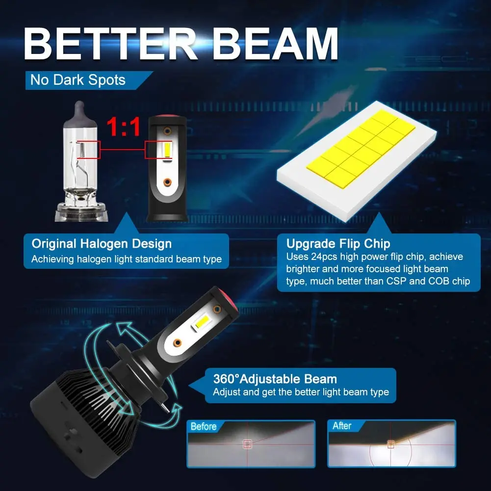1. Супер яркость с флип-чипом светодиодные фары автомобиля, лучший концентрирующий эффект.