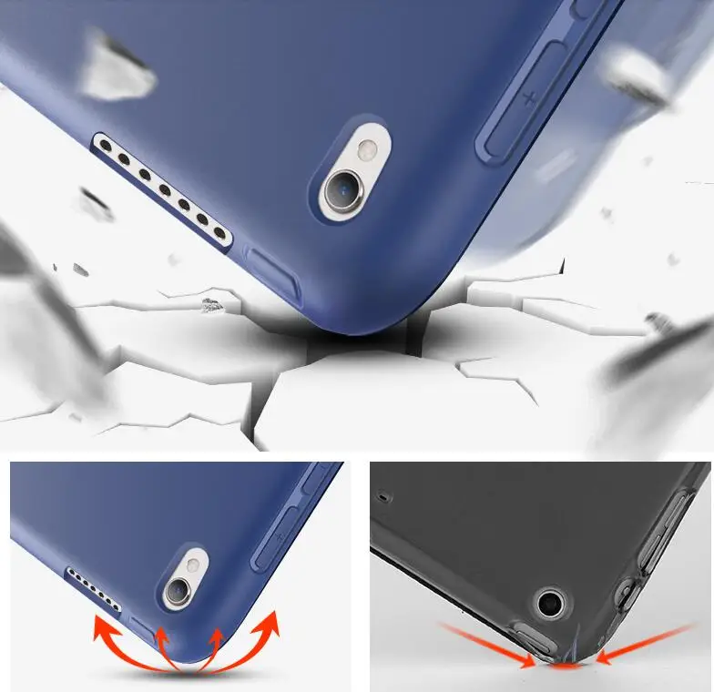 Умный чехол с тройной складкой спереди изготовлен из полиуретана и мягкого прорезиненного покрытия по внутренним и внешним сторонам задней части корпуса, который приятен на ощупь в руках и делает его менее скользким. Это цельный чехол, спереди и сзади не отделяются Для iPad Pro 9,7 дюйма 2016:A1673 A1674 A1675