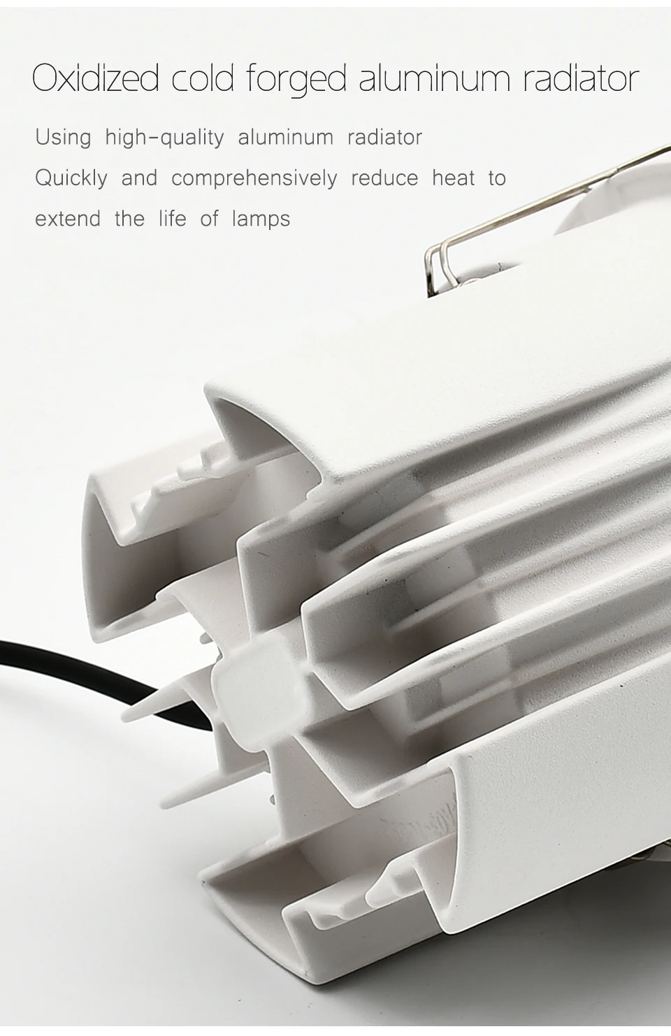 Долгое время работы, производят низкое тепло Окисленный холодный кованый алюминиевый радиатор, быстро и всесторонне уменьшает тепло, чтобы продлить срок службы ламп