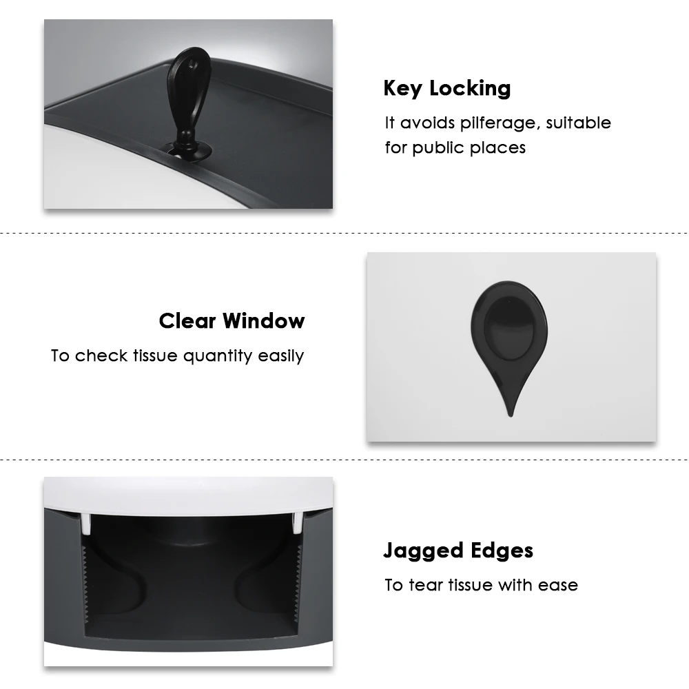 Этот превосходный диспенсер для банных салфеток, который предназначен для хранения одной гигантской рулонной ткани, может удерживать до 9 ''диаметра рулонов. Настенная особенность очень экономична. Кроме того, он поставляется с ключом, обеспечивающим легкий ручной доступ к бумаге.