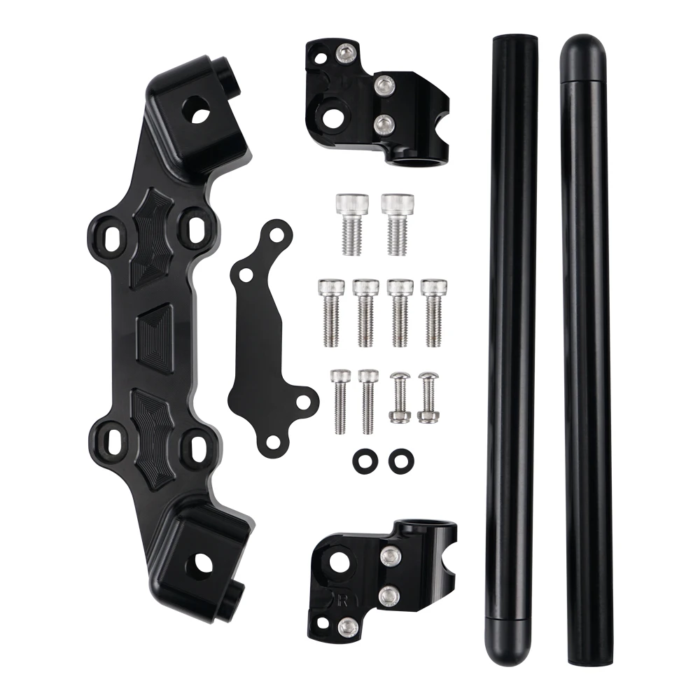 Наши новые болты с пластиной адаптера непосредственно на Стоковое крепление для руля, сохраняя все зазоры на складе, при этом ставя руки в более естественное положение. Эта установка позволяет использовать несколько стояков, давая вам возможность настроить высоту стержня для оптимального комфорта.