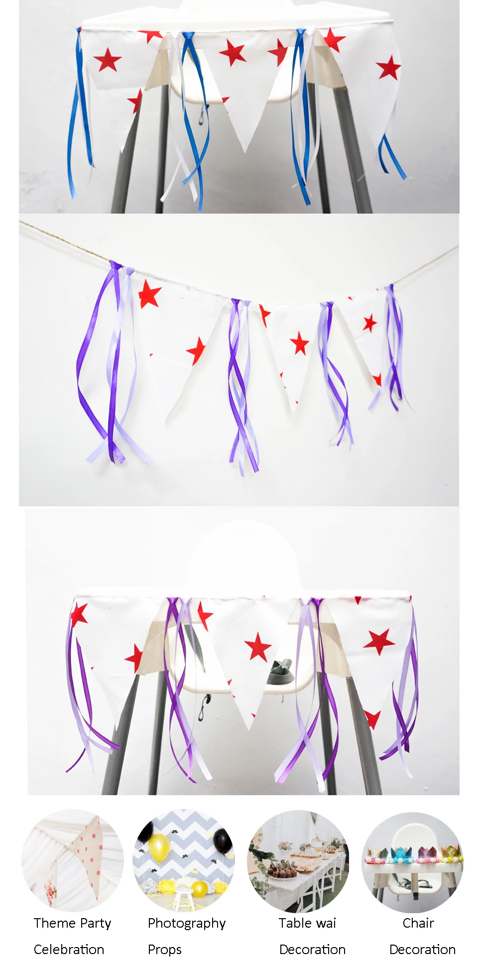 Звезда Вымпел Баннер красочные ленты баннер для вечеринки в честь Дня рождения ребенка душ флаг стул питомник гирлянда конфеты бар украшения