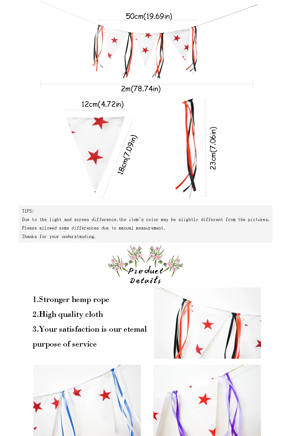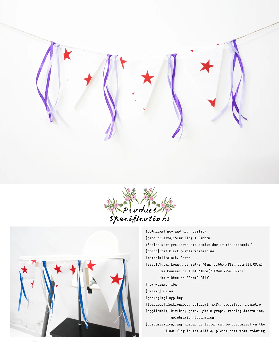 Простой дизайн звезды Вымпел добавить красочную ленту Умудряется чувствовать себя ярко и свежо Описание: 100% новый и высокое качество [Название продукта]: флаг со звездой + лента (Ps: позиции со звездами выбираются случайным образом из-за ручной работы.) [Цвет]: красный + черный; Фиолетовый; Белый + синий [Материал]: ткань, Лиен [Размер]: общая Длина 2m(78.74in); Лента + флаг 50 см (19.69in); Вымпел 18*12*18 см (7,09*4,72 * 7.09in); лента 23 см (9,06 дюйма) [Вес нетто]:10 г [Происхождение]: Китай [Упаковка]:opp мешок [Особенности]: модные, яркие, мягкие, цветные, многоразовые [Применимо]: День рождения, реквизит для фотографий, свадебное украшение, украшение для праздника [Изготовление на заказ]: любой номер или буква могут быть настроены на льняном флаге посередине, пожалуйста, обратите внимание при заказе Советы: Благодаря светильник экране монитора фактический товар точно такой же, как и цвет изделия на фото может быть s светильник ly отличается из-за характеристик монитора компьютера. Пожалуйста, учитывайте некоторые различия из-за ручного измерения. Спасибо за понимание.