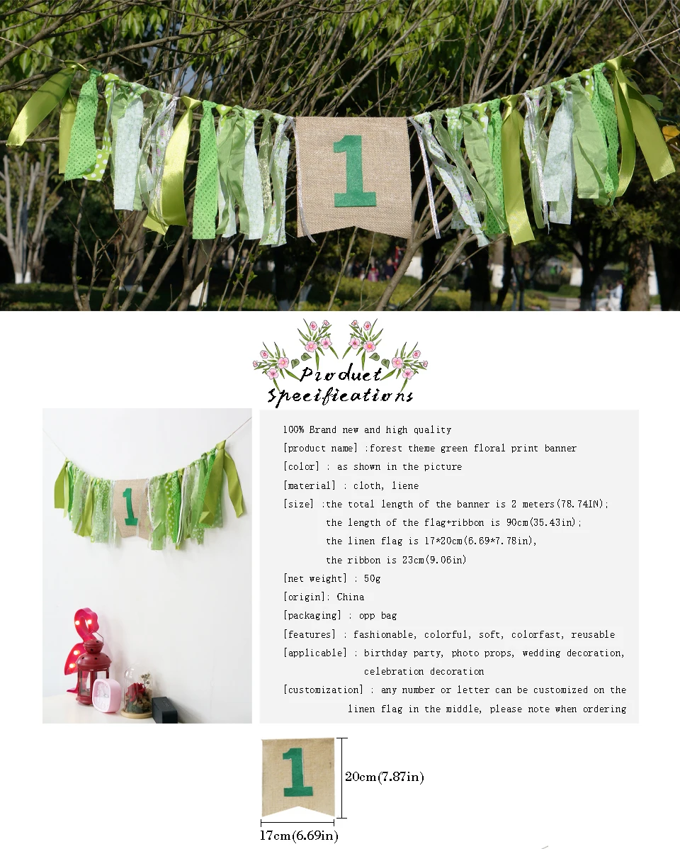 Зеленый Баннер на тему леса, на заказ, день рождения, вечеринка, детский душ, флаг, стул, детская гирлянда, конфетный бар, украшение, Deco Anniversaire 100% новый и высокое качество [Название продукта]: Зеленый Баннер с цветочным принтом в Лесной Тематике [Цвет]: как показано на картинке [Материал]: ткань, Лиен [Размер]: общая длина баннера составляет 2 метра (78,74 дюйма); Длина флага + лента-90 см (35,43 дюйма); льняной флаг 17*20 см (6,69*7,78 дюйма), лента 23 см (9,06 дюйма) [Вес нетто] : 50 г [Происхождение]: Китай [Упаковка] : opp мешок [Особенности]: модные, яркие, мягкие, цветные, многоразовые [Применимо]: День рождения, реквизит для фотографий, свадебное украшение, украшение для праздника [Изготовление на заказ]: любой номер или буква могут быть настроены на льняном флаге посередине, пожалуйста, обратите внимание при заказе Советы: Благодаря светильник экране монитора фактический товар точно такой же, как и цвет изделия на фото может быть s светильник ly отличается из-за характеристик монитора компьютера. Пожалуйста, учитывайте некоторые различия из-за ручного измерения. Спасибо за понимание.