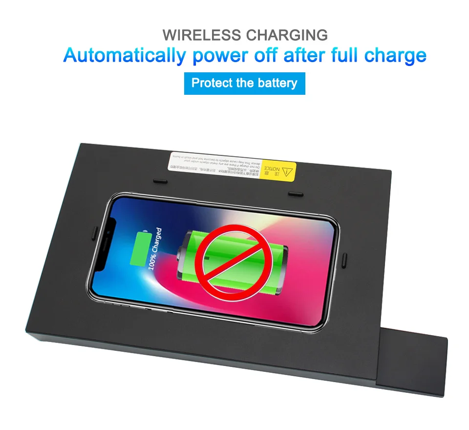 > Особенности: Стандарт реализации: Qi международный стандарт беспроводной зарядки WPC Qi 1,2 Рабочая температура: -30 C -+ 80 C Входное напряжение: 9-16 В Эффективность зарядки: >75% Рабочая частота: 110 кГц-205 кГц Место установки: зона подлокотника Установка: требуется профессиональный опыт Быстрая Беспроводная зарядка: 15 Вт, быстрая зарядка, 7,5 W для iPhone, кроме того, поддержка 5 Вт беспроводной зарядки Поддержка телефонов: все устройства с поддержкой Qi, такие как iPhone 8, 8 Plus, X, XS, XS Max, XR; Samsung S6, S6 edge, S6 edge +, Note 5, S7, s7 edge, S7 edge +, S8, S8 и многие другие бренды и модели, перечисленные ниже; Защита от перенапряжения для защиты автомобильного зарядного устройства Дизайн 3 катушек для увеличения зоны зарядки и улучшения скорости зарядки, зарядка от 2 до 3 минут на 1% больше (Протестировано с iPhone 8)