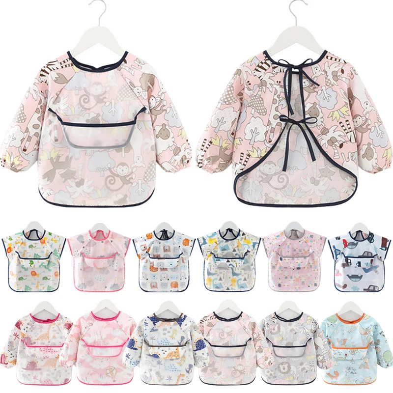 Детские нагрудники с длинными рукавами, детские нагрудники с рисунками животных из мультфильмов, водонепроницаемые фартуки без рукавов из ЭВА, нагрудники для кормления младенцев, Детские фартуки для рисования