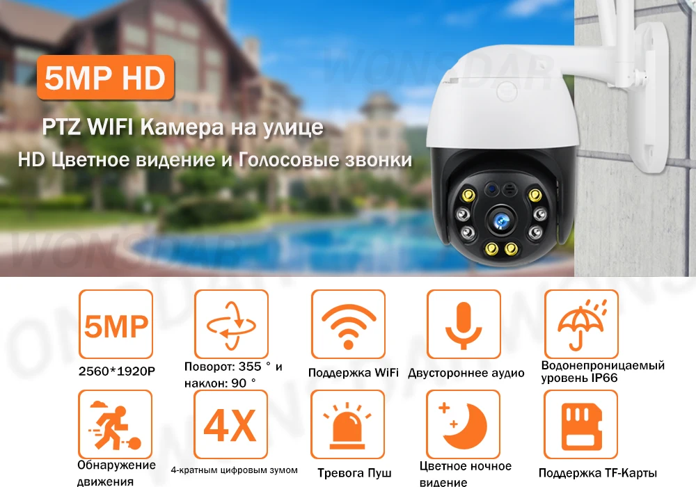 5-мегапиксельная WIFI IP-камера с 4-кратным цифровым зумом