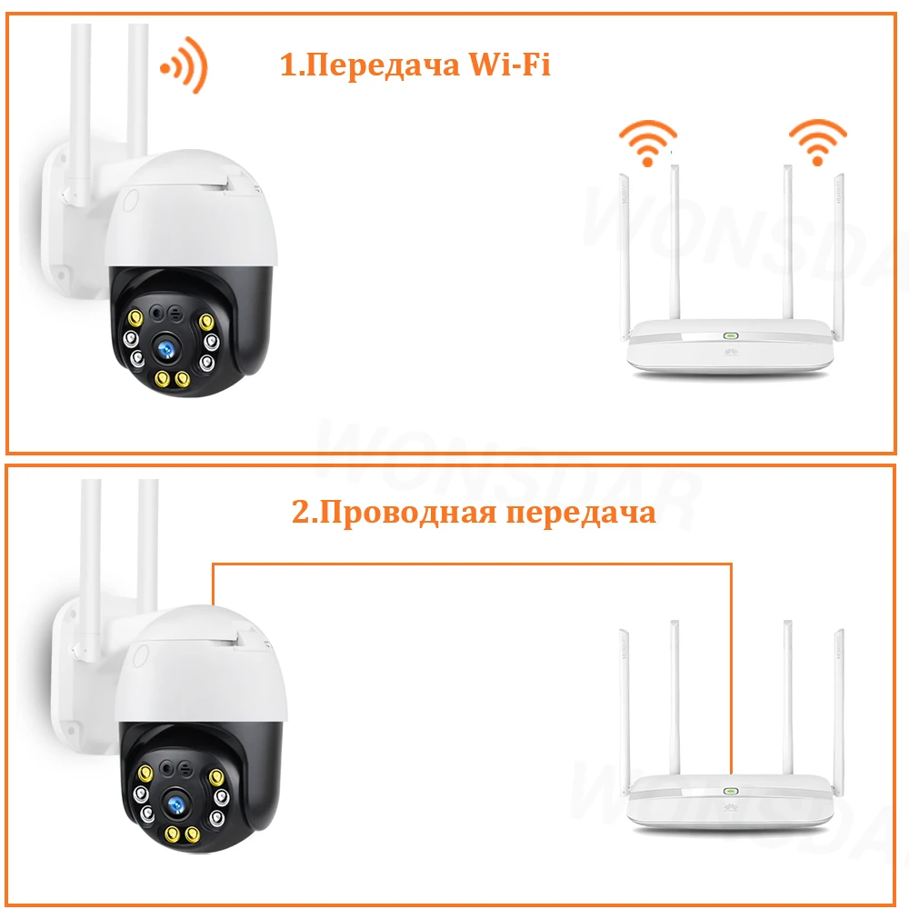 10-30 м дневное и ночное видение Поддержка обнаружения движения человека и функции сигнала тревоги Поддержка беспроводного (Wifi) и проводного двух режимов Поддержка двустороннего аудио разговора в режиме реального времени Поддержка ONVIF, работает с нашим NVR Поддержка панорамирования 355 градусов/наклона 90 градусов и 4X цифровой зум Поддержка TF карты макс. 128 ГБ и один месяц бесплатной облачной записи. Удаленно просматривайте через приложение «Carcam» на смартфоне.