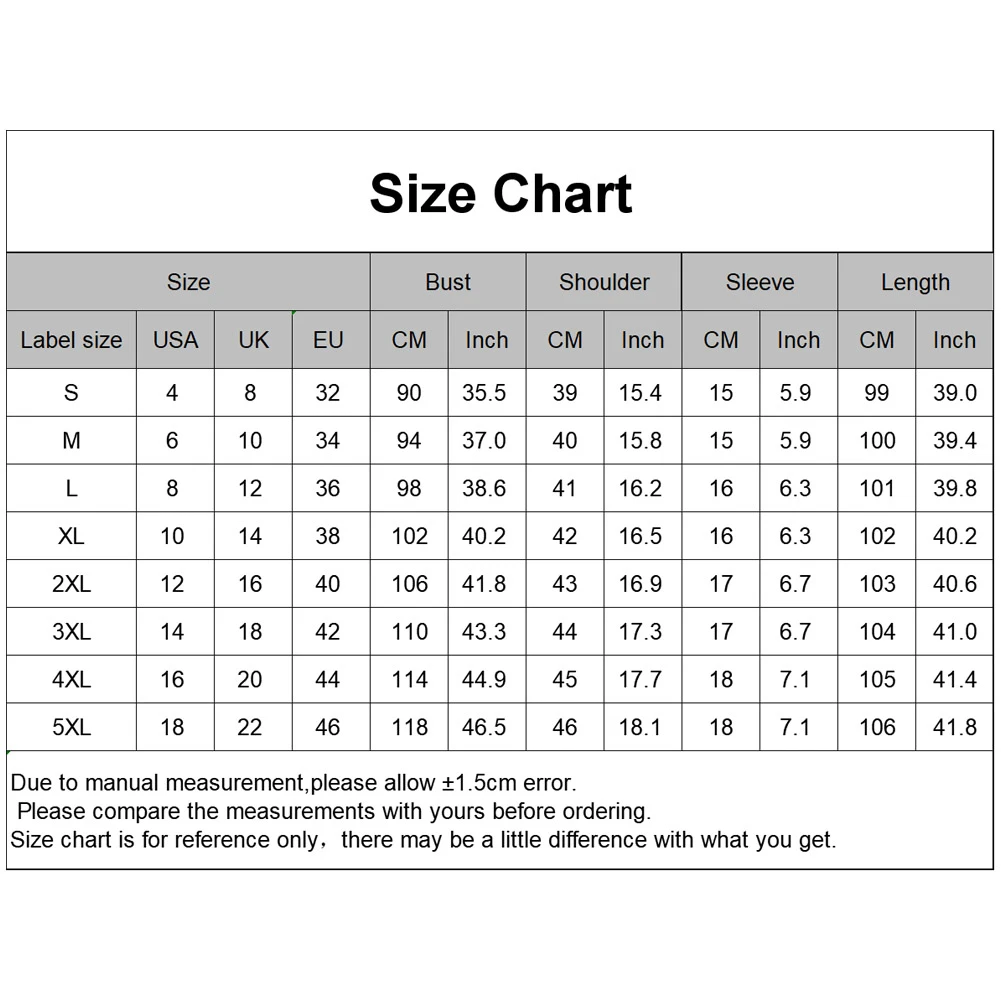 [Наш Размер 5XL] Обхват груди: 118 см/46,5 дюйма, ширина плеч: 46 см/18,1 дюйма, длина рукава: 18 см/7,1 дюйма, длина: 106 см/41,7 дюйма (прибл.)