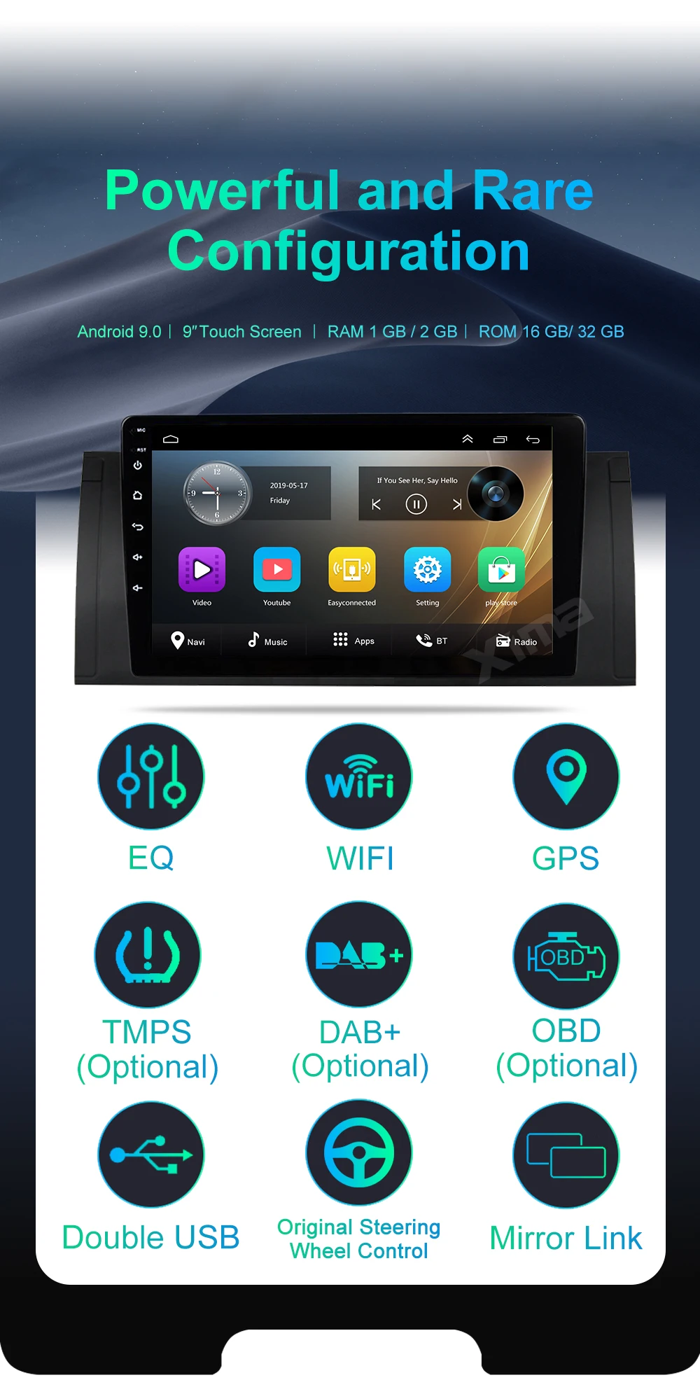 Разрешение экрана 1024*600, поддержка видеодисплея HD 1080P. Встроенный Wi-Fi для прослушивания онлайн-музыки и видео. Настройте звук в соответствии с вашими личными предпочтениями с 4-полосным графическим эквалайзером. Поп, рок, джаз, классический, плоский, пользовательский, голосовой несколько вариантов настройки позволяет вам адаптировать аудио впечатления к вашимНравится.