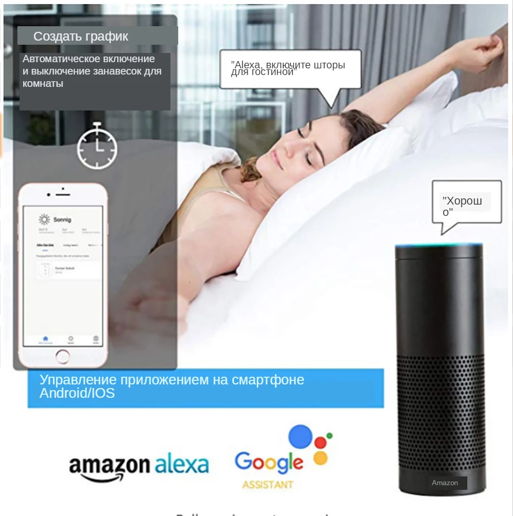 ”Alexa, turn on the livingroom curtains” Amazon Alexa, Google Home voice control to turn on and turn off the curtains. Automatically tum room curtains on and off by planning App Control in Android/IOS Smart phone