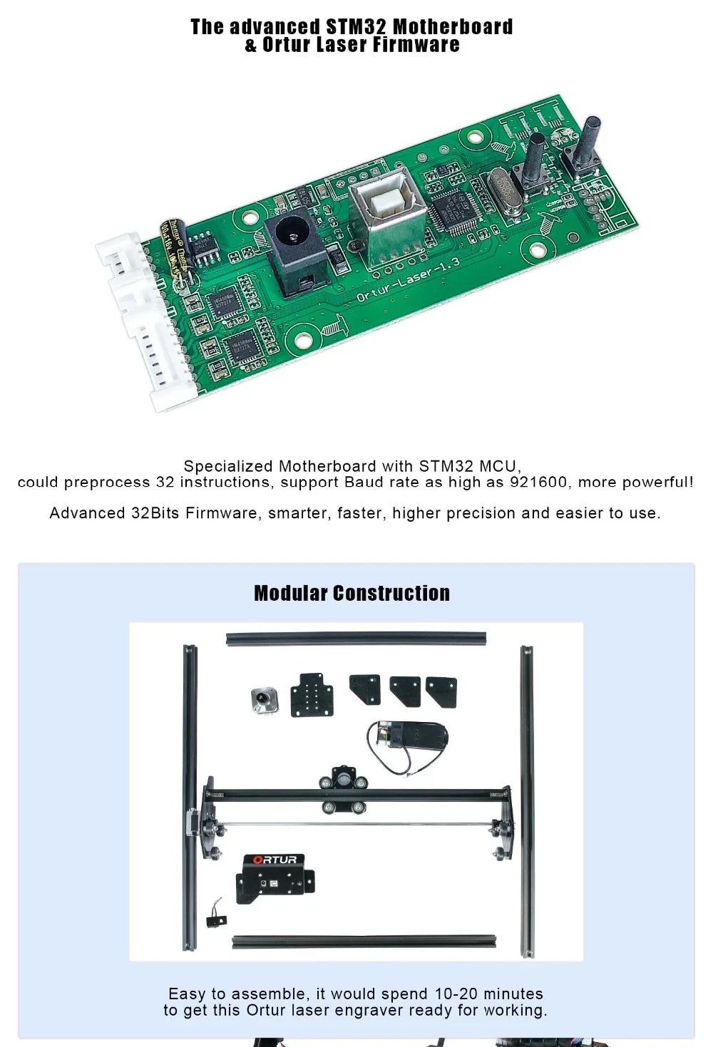 Добро пожаловать в Официальный магазин Ortur, пожалуйста, обратите внимание: A. Бесплатная доставка не означает бесплатную пошлину. Как мы все знаем, импортные товары высокой стоимости будут взиматься налог на импорт в каждой стране; B. Методы доставки продавца-это доставка курьерской компанией, такой как DHL/FedEx/ UPS/ TNT; C. У нас есть бесплатный метод DDP в страны ЕС, но это медленный метод, и требуется 30-45 дней для доставки. При возникновении любых вопросов обращайтесь к нам! Краткое введение: ● Лазерный мастер 2 - 7 Вт хорошо подходит для гравировки изображений. ● Лазерный мастер 2 - 15 Вт является наиболее экономически эффективным, доступен как для гравировки, так и для резки. ● Лазерный мастер 2 - 20 Вт обладает более высокой мощностью и поддерживает более быструю гравировку и резку. Основные Особенности: ● Специализированная материнская плата с MCU STM32 Он может обрабатывать 32 инструкции, поддерживать скорость передачи данных до 921600, более мощный! ● Самая продвинутая 32 битная Лазерная гравер прошивка Ortur laser master прошивка, умнее, быстрее, более высокая точность и проще в использовании. ● Диапазон мощности лазера может быть S0 - S1000, по сравнению с 8 битами настольных лазерных гравировальных станков, которые имеют только S0 - S255, Ortur лазерный мастер может контролировать лазерный луч более точно, может даже использовать лазерное устройство высокой мощности, чтобы «нарисовать» изображение на бумаге, О том, что 8 бит высокой мощности лазерные гравировальные инструменты не смог нажать на кнопку. ● Скорость гравировки может достигать 3000 мм/мин. (Если не считать результат лазерной резьбы, скорость движения может достигать 1000 мм/сек.) ●Active защиты позиции На материнской плате есть g-сенсор, если машина обнаруживает неавторизованное движение, лазерный луч остановится. ●Laser луч Безопасность гвардии Если ваша компьютерная система остановлена или USB кабель отключен, привело к тому, что лазерный гравер останавливает движение, лазерный луч остановится, чтобы предотвратить пожар. ● Обнаружение и ограничение длительности экспозиции Если лазерный гравер находится под контролем, но пользователи забывают работать и поддерживать работу лазерного луча, дополнительная безопасность отключится, чехол остановит движение двигателя, чтобы предотвратить пожар. ● LaserGRBL (бесплатное программное обеспечение) поддерживает Windows XP, 7, 8, 10. LaserGRBL является самым популярным программным обеспечением для резьбы в мире, может импортировать различные форматы изображений, вы можете редактировать в PhotoShop, Inkscape, CAD и т. Д., а затем подключаться к граверу с помощью лазерного LaserGRBL для гравировки и резки. ● LightBurn (Платное программное обеспечение, lightburnsoftware.com) поддерживает Windows, Mac OS и Linux. Это самое популярное Платное программное обеспечение для резьбы в мире, очень простое в использовании. ● Этот лазерный гравер поддерживает режим PWM. ● Предварительно собранные детали, просто нужно 10 - 20 минут для установки машины. ● Большая площадь гравировки 400x430 мм. ● Рама из алюминиевого профиля + структурный кабель, прочная структура, плавная работа, привлекательный внешний вид ● Синхронизация механической структуры вала, избегайте синхронизации на двух y-рельсах во время полноскоростной гравировки. Параметры: ● Материнская плата: 32 бит материнская плата с STM32 MCU ● Прошивка: Ortur Laser Master прошивка ● О