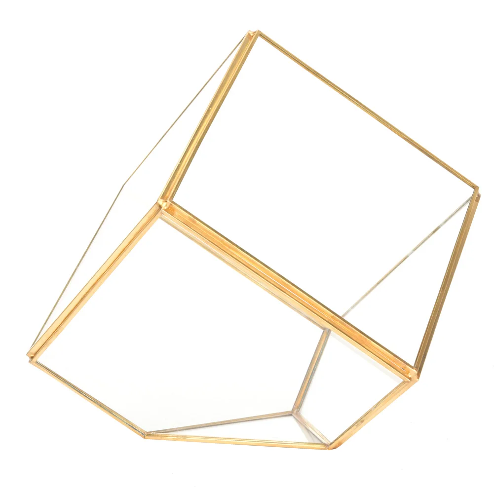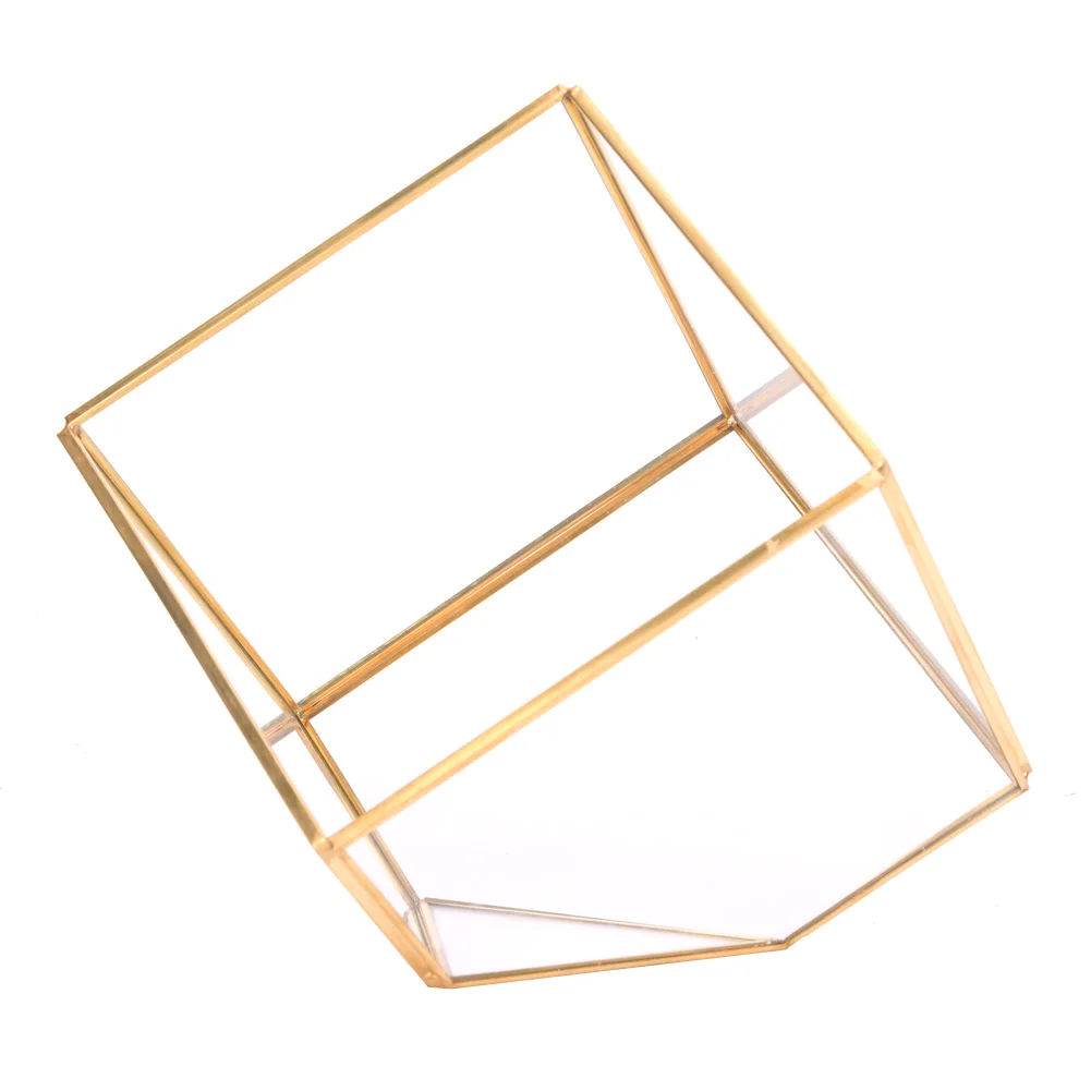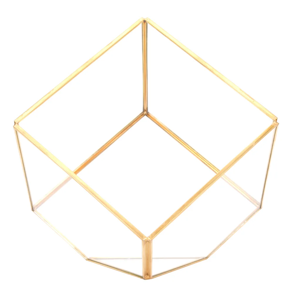 Gold Geometric Shape Succulents Plant Flowerpot Glass Planter Landscape Home Table Decoration Wall Hanging Flower Pots Planter