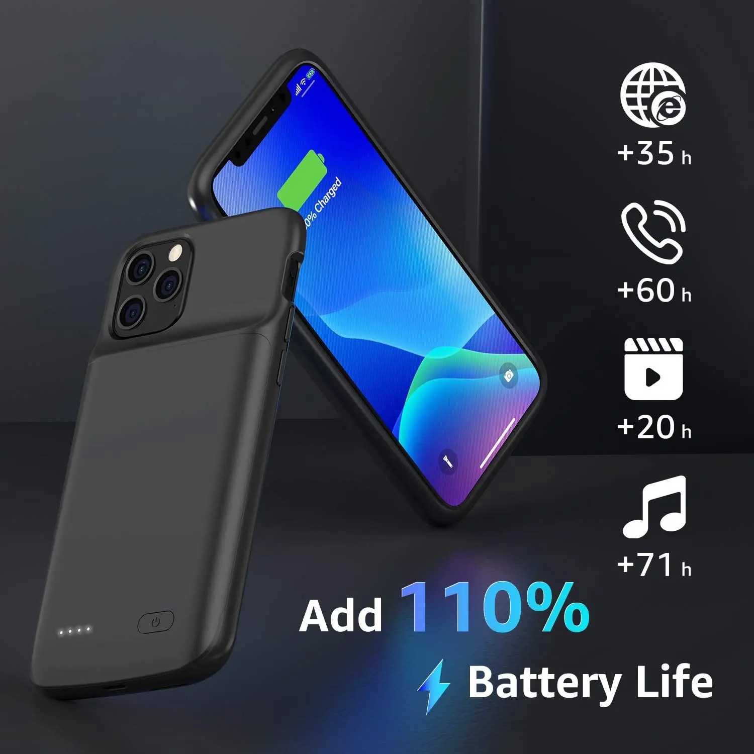 Пожалуйста, убедитесь, что чехол для аккумулятора, который вы покупаете, на 100% подходит для вашего телефона Этот чехол не поддерживает беспроводную зарядку, быструю зарядку или высокое зарядное устройство. Описание товара: Тип ячейки: литий-полимерный аккумулятор Номинальная мощность: --- 3200 мАч для iPhone 6/6s/7/8/SE 2020 версия 4,7 дюймов Чехол для батареи --- 5000 мАч для iPhone 6/6s/7/8 plus 5,5 дюймов Чехол для аккумулятора --- 4100 мАч для iPhone X/XS 5,8 дюйма Чехол для батареи --- 5000 мАч для iPhone XR 6,1-дюймовый чехол для батареи --- 5000 мАч для iPhone XS MAX 6,5 дюйма Чехол для аккумулятора --- 4800 мАч для iPhone 11 pro 5,8 дюйма Чехол для аккумулятора --- 5000 мАч для iPhone 11 6,1 дюйма Чехол для аккумулятора --- 5000 мАч для iPhone 11 pro MAX 6,5 дюйма Чехол для аккумулятора --- 4700 мАч для iPhone 12 mini 5,4 дюйма Чехол для аккумулятора --- 4800mAh для iPhone 12/12 pro 6,1-дюймовый чехол для батареи --- 4800 мАч для iPhone 12 pro max 6,7 дюймов Чехол для аккумулятора Вход: 5 В/1,5 А; Выход: 5 В/1 А; Время зарядки: около 3-4 ч Характеристики: 1. 3200 мАч/4100 мАч/4800 мАч/5000 мАч Высокая емкость. 2. Полностью закрытый защитный чехол из ТПУ 3. Защитная схема для перезарядки, использования и короткого замыкания 4. Светодиодный индикатор умной мощности В комплекте: 1 * чехол для аккумулятора, 1 * Руководство пользователя, 1 * Подарочная коробка Пожалуйста, убедитесь, что чехол для аккумулятора, который вы покупаете, на 100% подходит для вашего телефона
