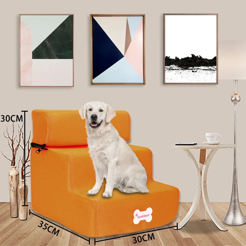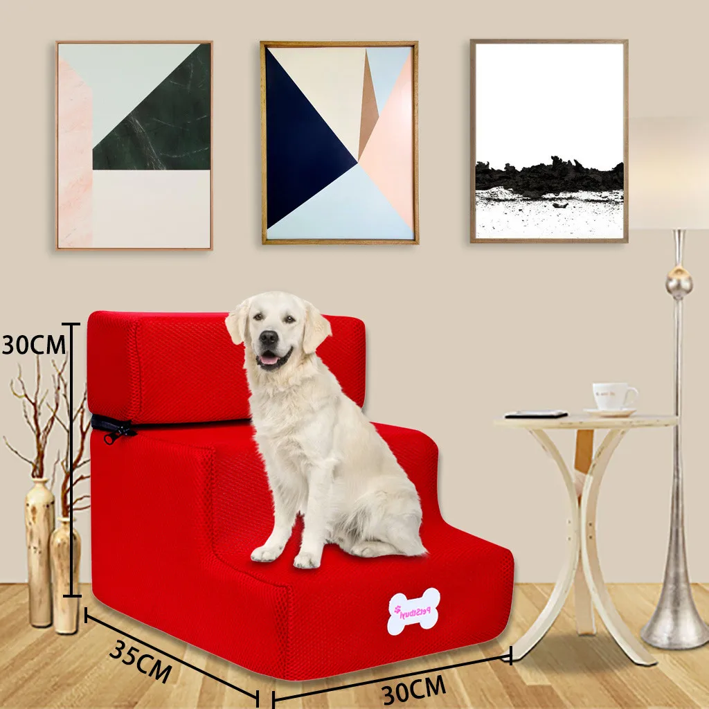 Доступно Лестница для домашних животных в двухступенчатой форме прочная и удобная для домашних животных Или залезать. При желании они также могут отдохнуть на верхней ступени. Мягкая ткань сохраняет тепло.