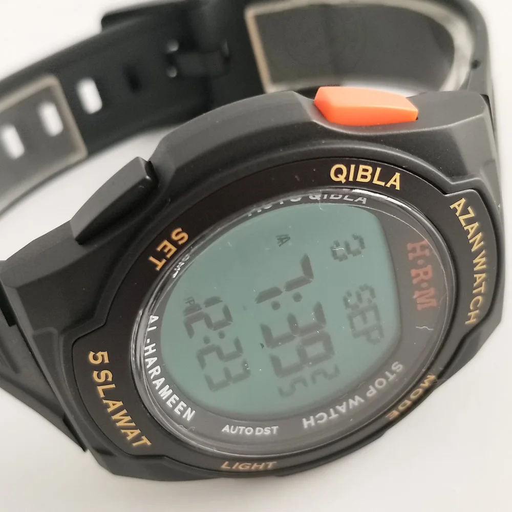 Коран Закладка Эта функция используется для записи последнего имени суры и номера стихов, которые вы достигли при чтении Корана * Девять систем taqweem запрограммированы в часах AL-HARAMEEN использует местную taqweem или наиболее широко используемую систему taqweem для вашего города. Другие стандартные системы taqweem доступны следующим образом: *(DF) Local taqween (H) Выбор метода Hanafi для ASR F: 15 Umm al-Qura taqweem F: 18 Umm al-Qura taqweem F: 19 Umm al-Qura taqweem 18,17 мусульманская мировая Лига (мусульманская лига) 19:17 Египетский таквеем (Египет) 18: 18 Исламский университет в Карачи (Hanafi taqweem) 15:15 союз ИСЛАМСКОЕ ОБЩЕСТВО Северной Америки (ISNA) 1:30 фиксированное время Fajr время определяется как фиксированный интервал времени до времени shrooq. Время Isha определяется как фиксированный интервал времени после Magrib azan. Эта система используется в Северной Европе. * Следующий Iqamah (время отдыха, чтобы молиться) Следующие Iqamah с двумя способами, как показано ниже: 1. Если вы установите минуты до Iqamah, часы будут записывать время отдыха до Iqamah с тех минут, которые вы установите до 0. 2. Если вы не настроите минуты на Iqamah, Часы будут записывать минуты после azan от 0 до 30. * Автоматическая сигнализация Iqamah для всех молитв Эта уникальная функция напомнит вам каждый день точно в то же время относительно времени azan. Например, предположим, что вы установите будильник молиться 12:15 вечера, а ZUHR azan-в 12:00 вечера. На следующий день, если ZHUR azan time станет 12:01 PM, то автоматически этот будильник изменится на 12:16 PM. В этот чехол, вы будете просыпаться через 15 минут после того, как ZHUR времени азана каждый день. Дата Жур азан ZUHR сигнализация 1 мая 12:00 PM 12:15 PM 2 мая 12:16 PM 12:15 PM автоматически изменяется на 12:16 * Ежедневные сигналы тревоги Сигнализация 1 и сигнализация 2, эти два повседневных будильника являются обычным сигналом, который звонит в то же время каждый день. * Направление Qibla Направление Qibla (по отношению к северу) может быть отображено. Угол Qibla также будет отображаться между 0 и 360 градусов, по часовой стрелке с северной стороны. * Хиджри и григорианские календари: Календарь григориана или хиджри может быть отображен. Календарь хиджри следует за григорианской датой и основан на астрономической Луне, видимой в Мекке. * Синий EL задний светильник * Возможность отображения времени 12 (am/pm) или 24 часа * Можно легко добавить новый город (долгота, долгота и GMT информация) * Возможность сохранения дневного света (для стран, использующих эту систему)