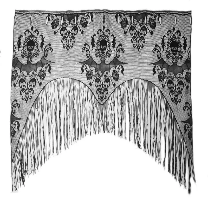 97x102 Хэллоуин занавеска для окна кружевная паутина занавеска с черепами занавеска для занавески с кисточкой