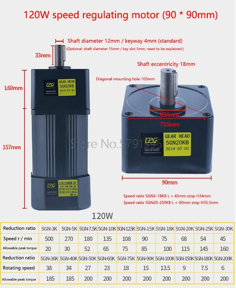 5IK120RGN-CF 120 Вт AC220V мотор-редуктор переменного тока, регулируемая скорость, Реверсивный, высокий крутящий момент + регулятор скорости USD 93,5/Шт/Лот 1