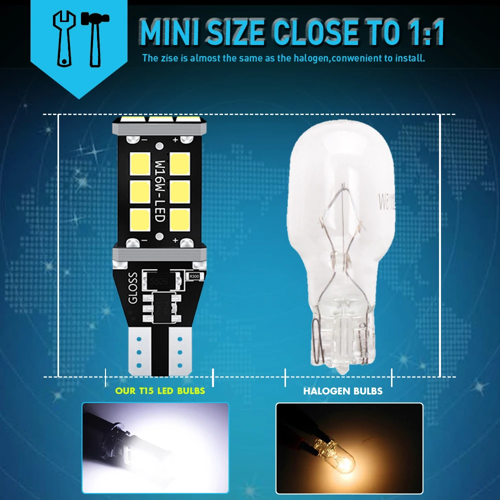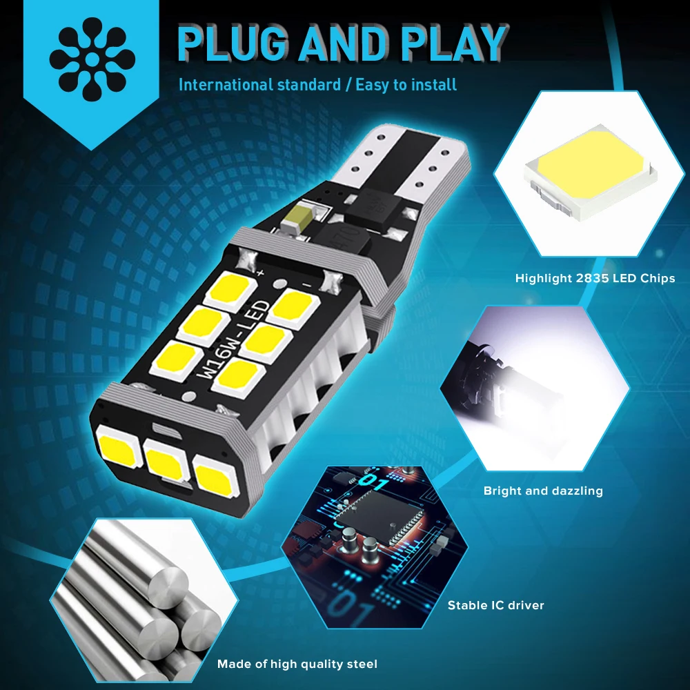 Модель: T15 920 921 912 W16W Размер SMD: подсветка 21 чип 2835SMD Цвет светильник: белый, красный, оранжевый Срок службы: более 60000 часов Рабочее напряжение: 12 В Угол свечения: 360 градусов Использование: фонарь заднего хода, габаритный фонарь, задний фонарь...