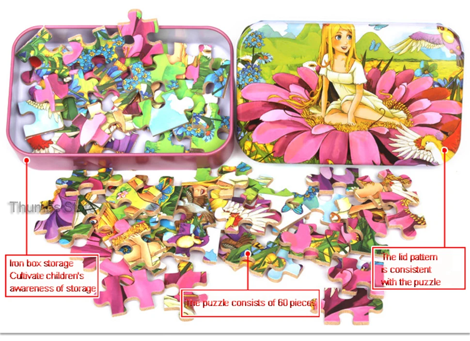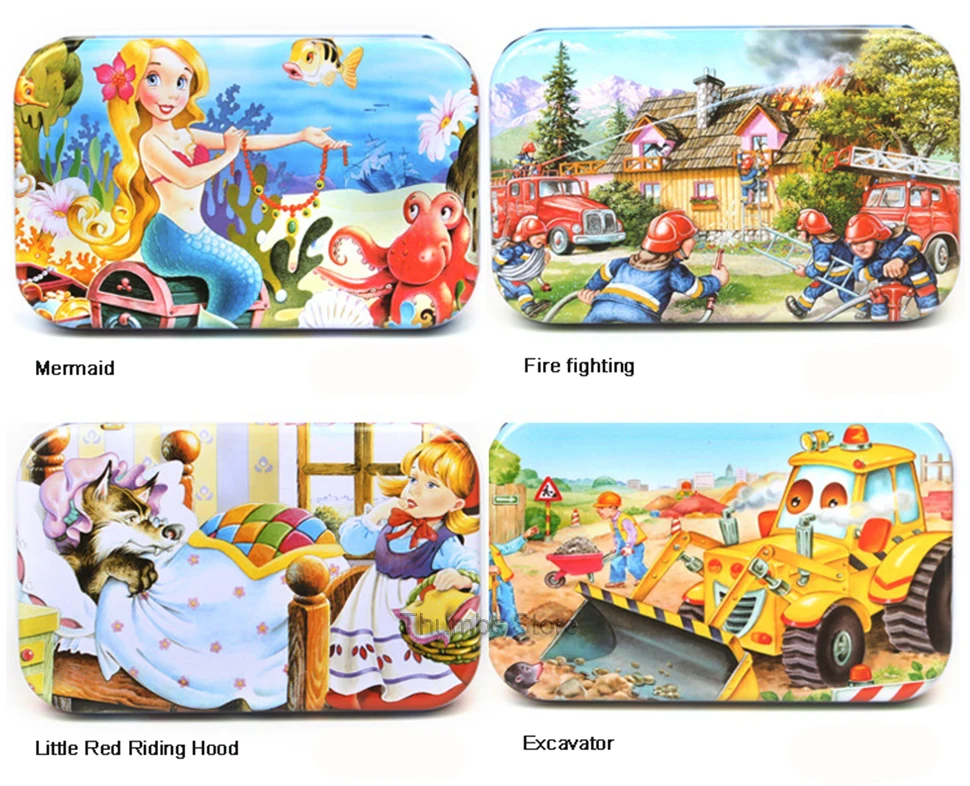 Новинка 60 штук деревянные головоломки Дети мультфильм железный ящик головоломка