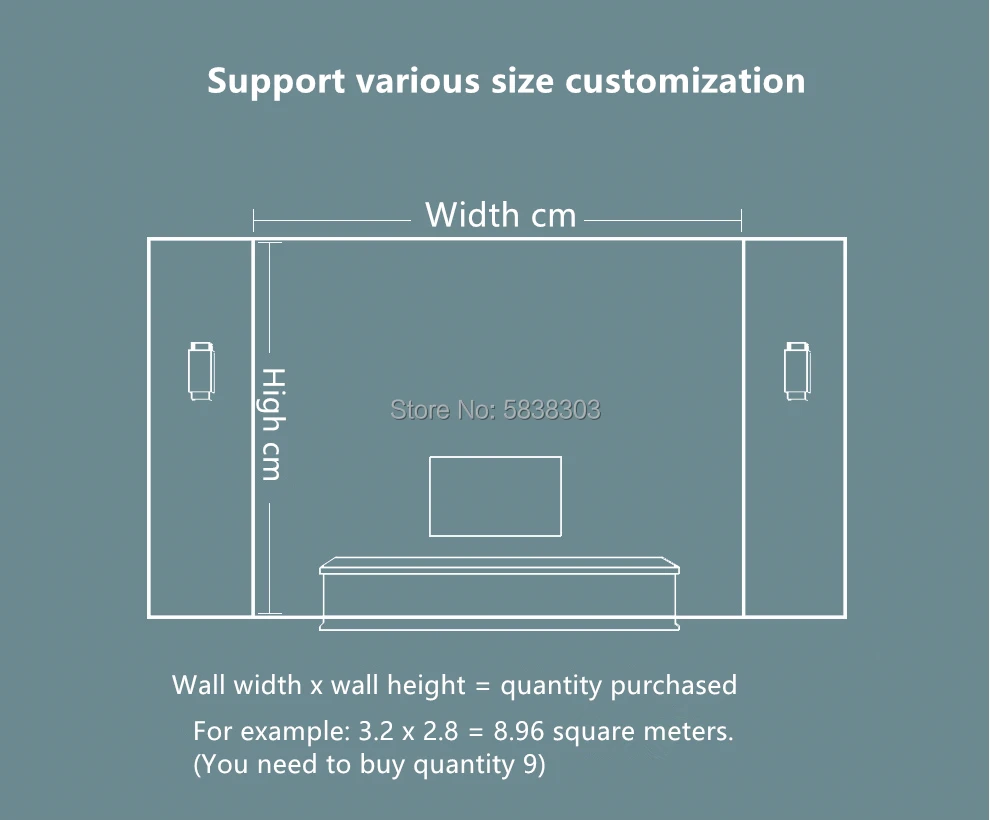 Количество 6: 6 квадратных метров = 300 см (ширина) x 200 см (высота) (9'10 "x 6'7") футов