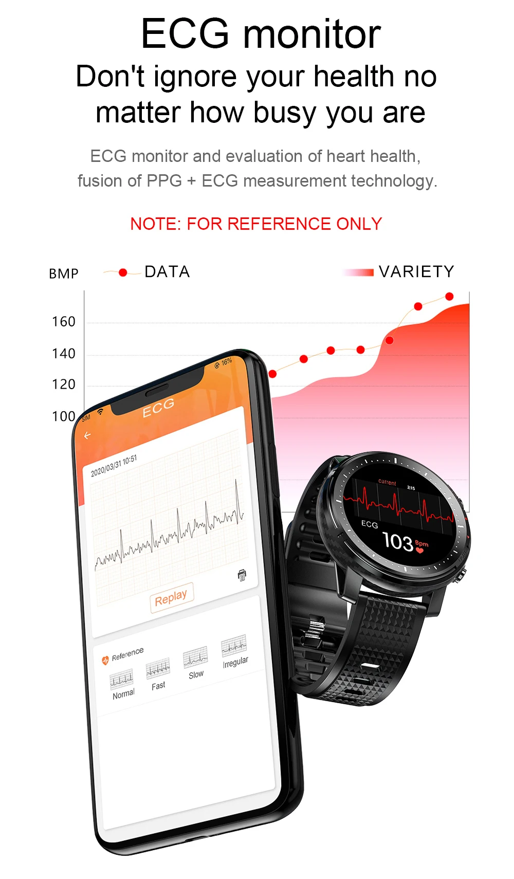 Не игнорируйте свое здоровье, независимо от того, насколько вы заняты. ЭКГ монитор и оценка здоровья сердца слияние PPG + измерение показателей ЭКГ технологии. Примечание только для справки