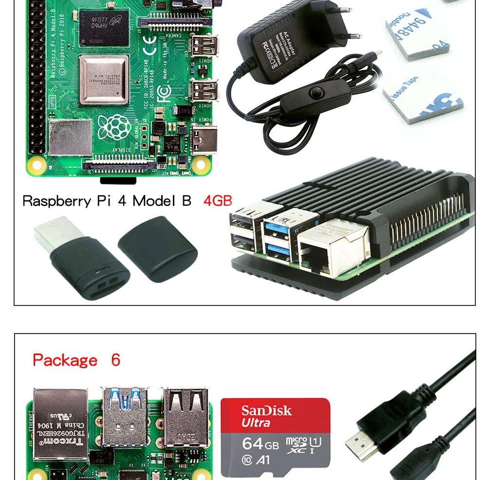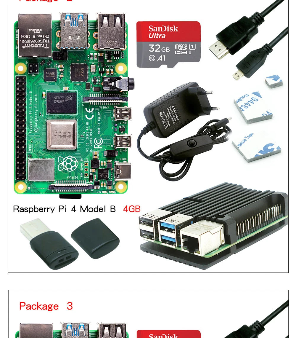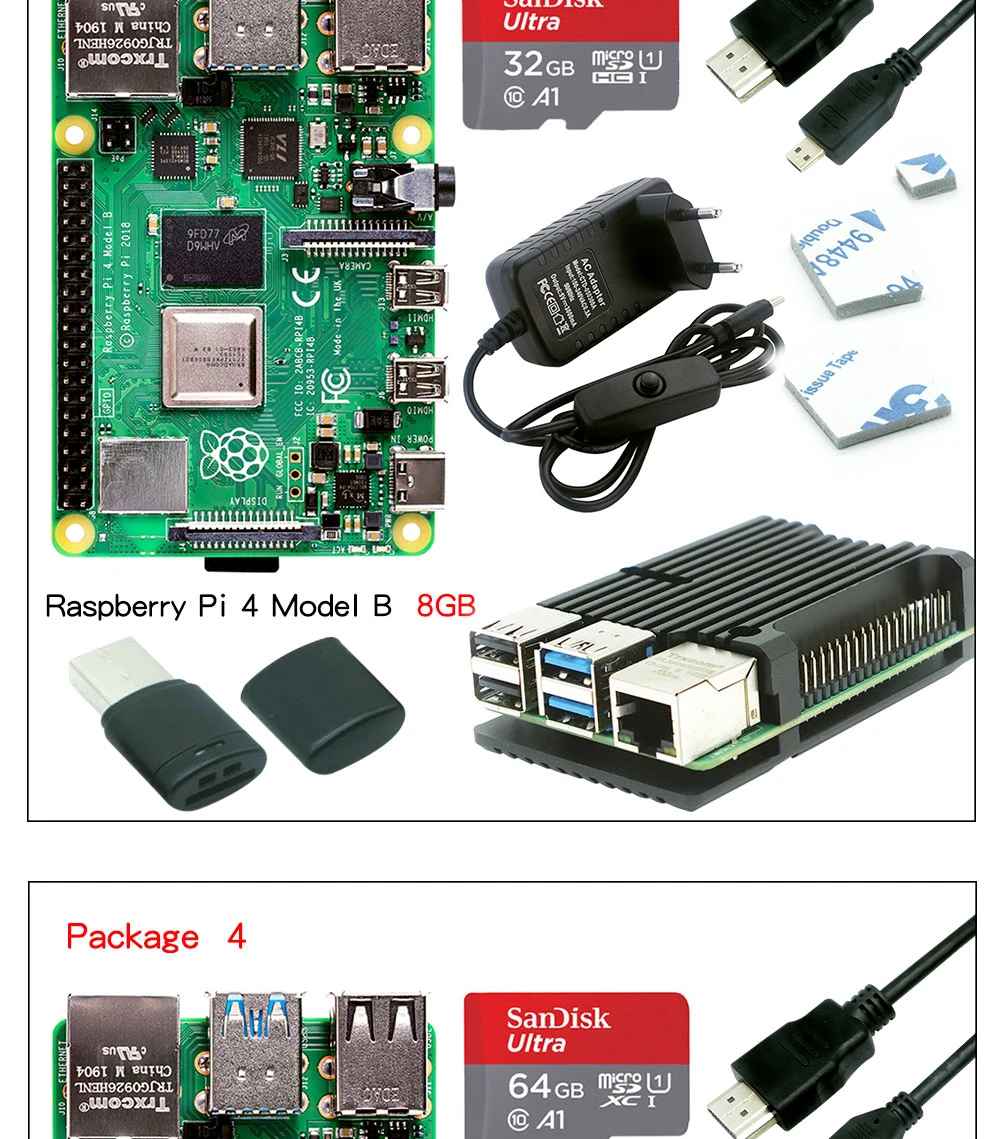 Оригинальная Raspberry Pi 4 Модель B 2 ГБ 4 ГБ 8 ГБ комплект + Алюминиевый Чехол + 3A переключатель питания + HDMI-Совместимость + опция 64 32 Гб SD карта