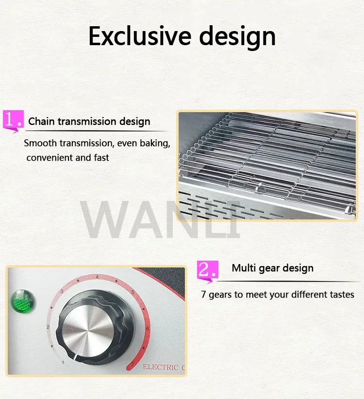 Параметры продукта Название: цепной тостер Модель: tt-150 Напряжение: 220 ~ 240 В Мощность: 1300 Вт Размер посылка: 510*360*380 мм Вес брутто: 14 кг Размер изделия: 560*320*200 мм Вес нетто: 12 кг Материал корпуса: нержавеющая сталь Дисплей продукта