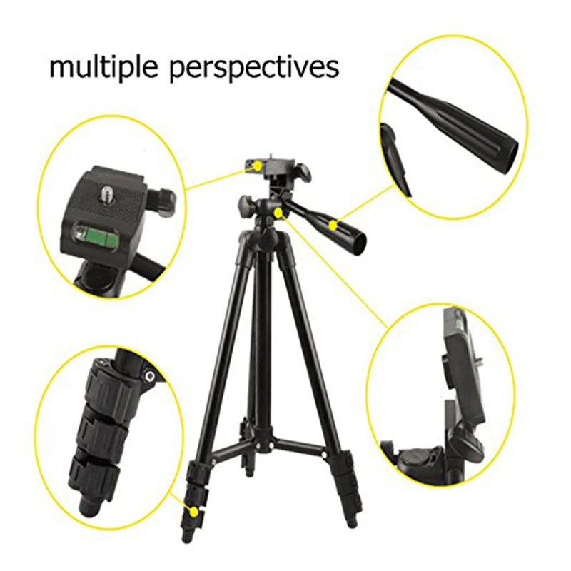 Aluminum lightweight tripod stand, ultra compact ,sturdy and durable.Non-slip rubber feet