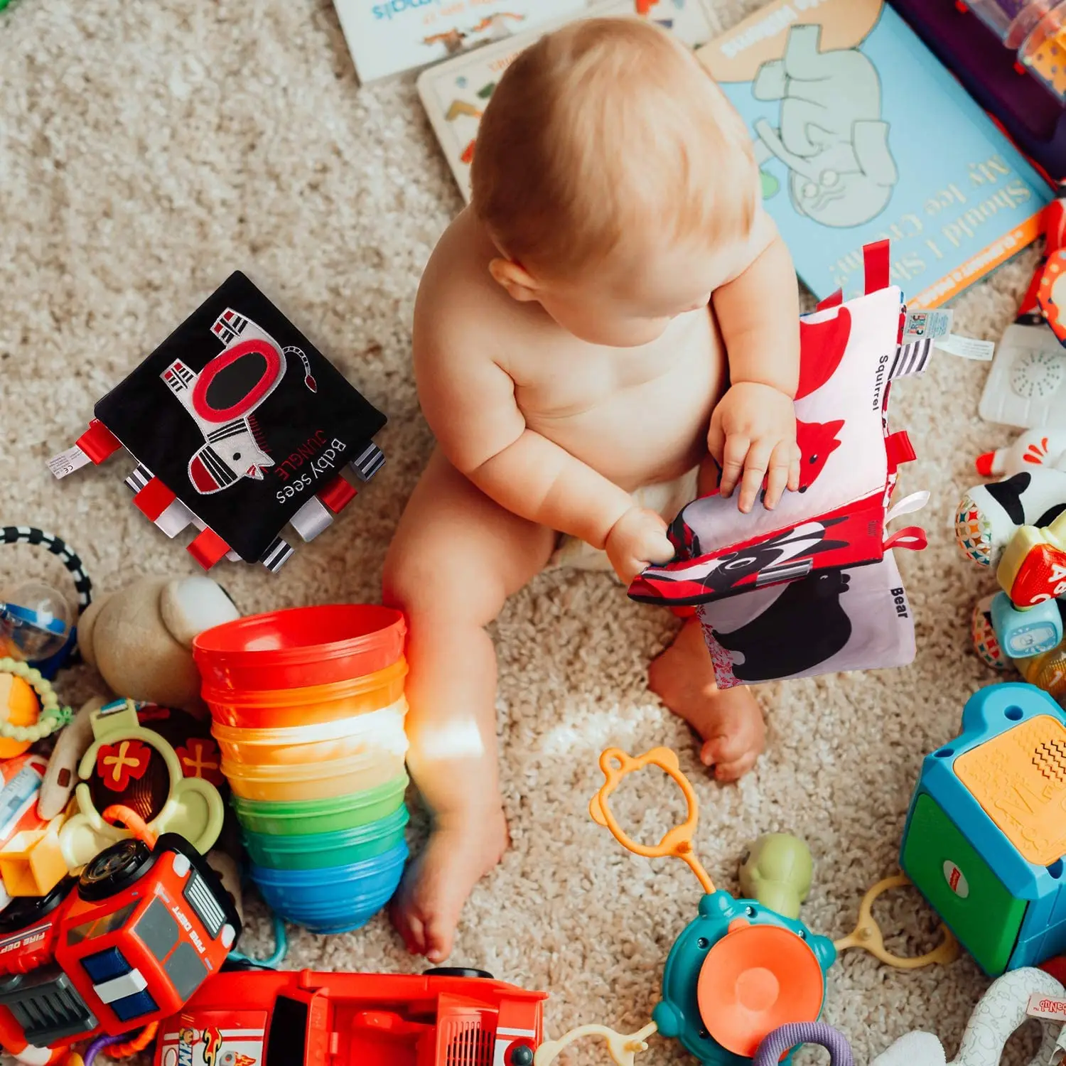 Используются различные комбинации ткани с ярким цветом заказа, шесть граней которых четыре или пять граней имеют трехмерный рисунок, каждая сторона имеет разные маленькие органы, с колокольчиками, кольцевой бумагой, колокольчики, защитные зеркала, ручки, захватывающие кольца, веселье, все виды трехмерного дизайна, Чтобы ребенок приносил различные чувства антенны, красочные с большей стимуляцией зрительных нервов ребенка, ребенок обычно может играть в руки строительных блоков, чтобы носить крючки или тележку сверху, хрустящие колокольчики позволяют ребенку положить его. Тренируйте зрение ребенка, усики, слух и другое развитие