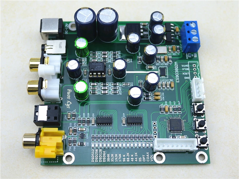 1. Поддержка коаксиального и оптоволоконного ввода, поддержка PCM44.1 khz-384khz /DSD64 DSD128 твердое решение (оптическое волокно не может поддерживать 384 кГц)