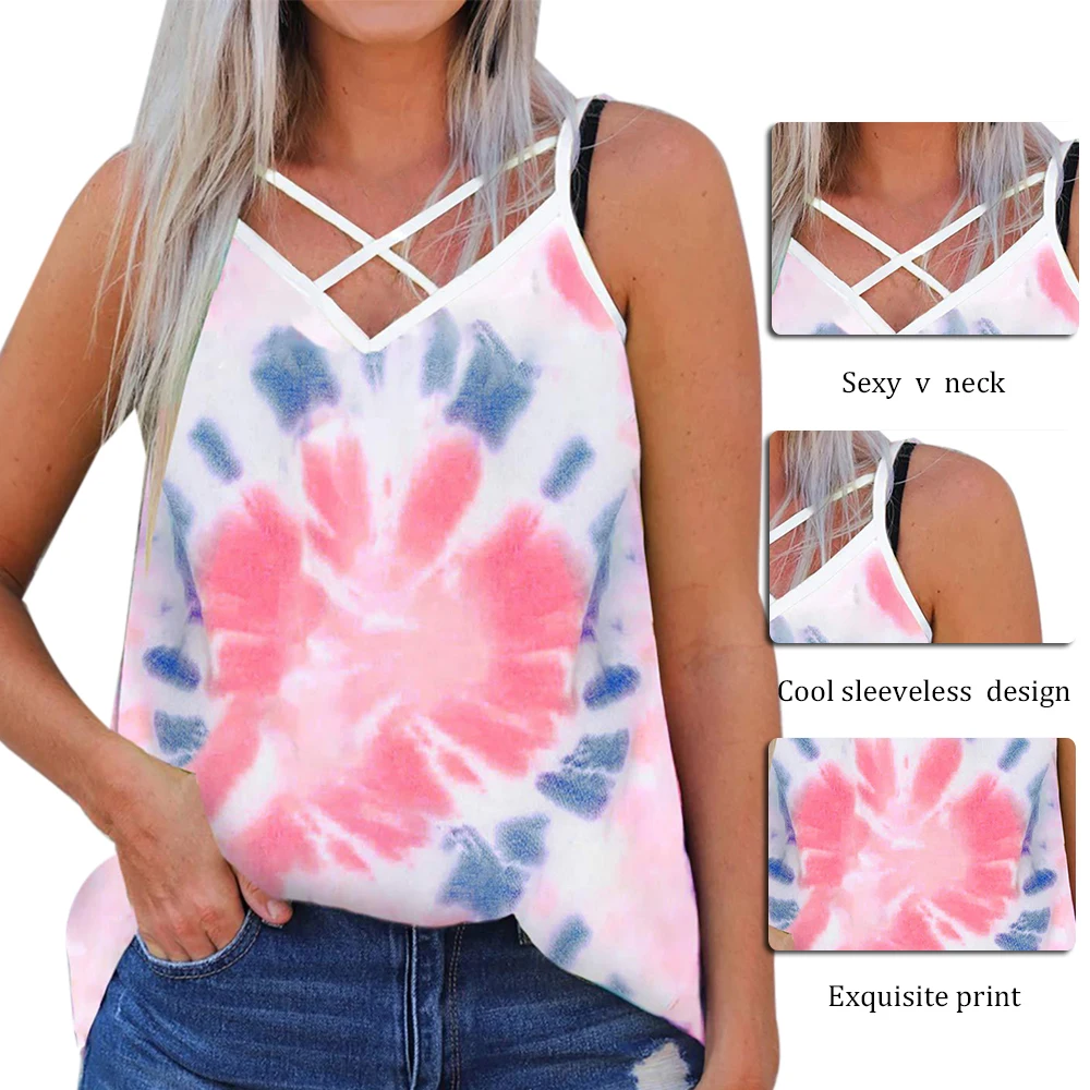 Женские блузы с v-образным вырезом с цветочным принтом топы с бретельками без рукавов Летнее пляжное платье-майка на каждый день Свободный Топ на бретелях