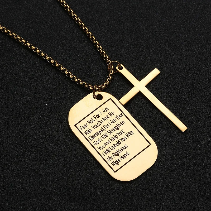 Military Style Dog Tags Cross Pendant Necklace Christian Lord's Prayer Bible Verse For Men Women Stainless Steel Charm Choker