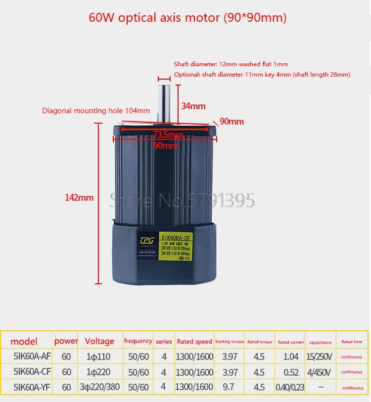 Вариант 6: 60 Вт трехфазный двигатель + диаметр вала 11 мм + AC380V