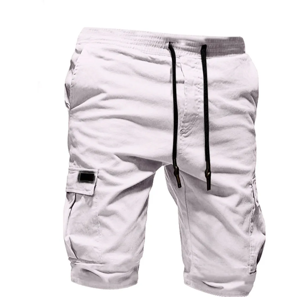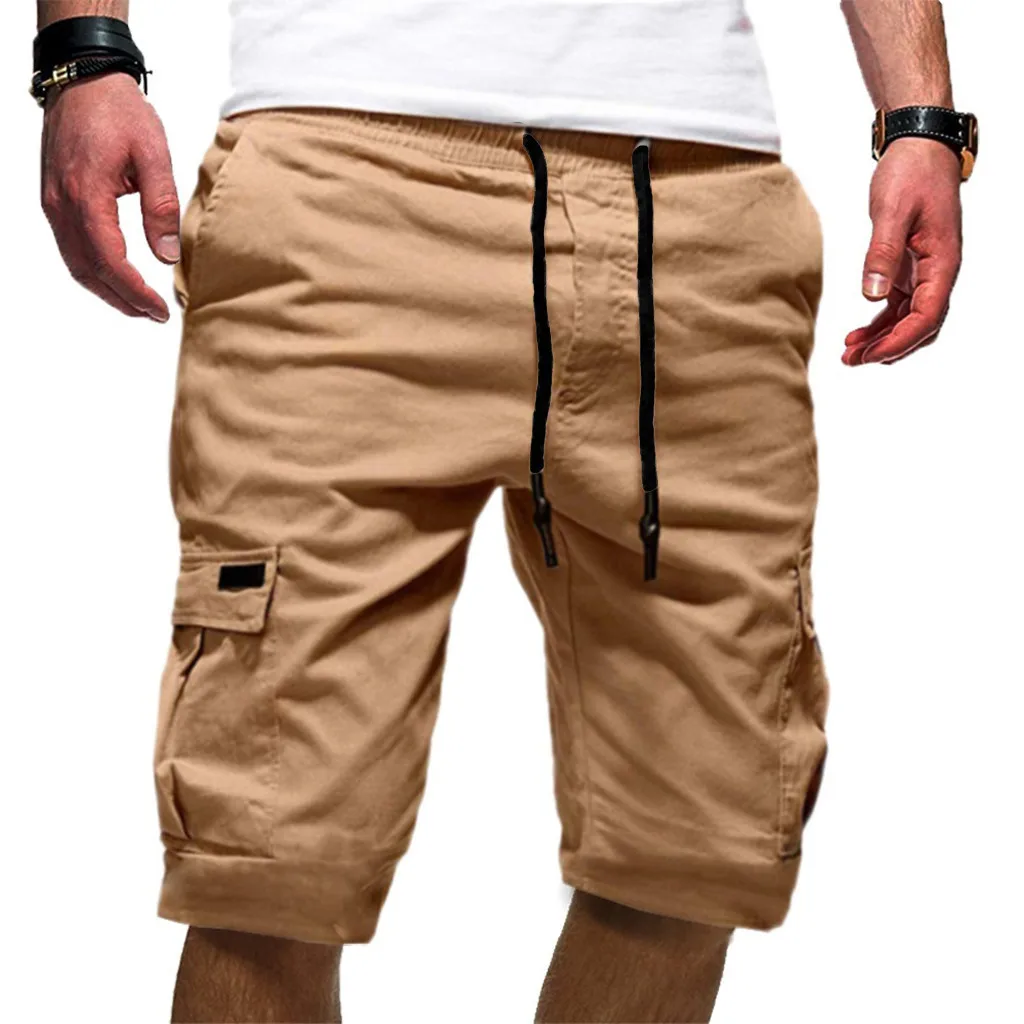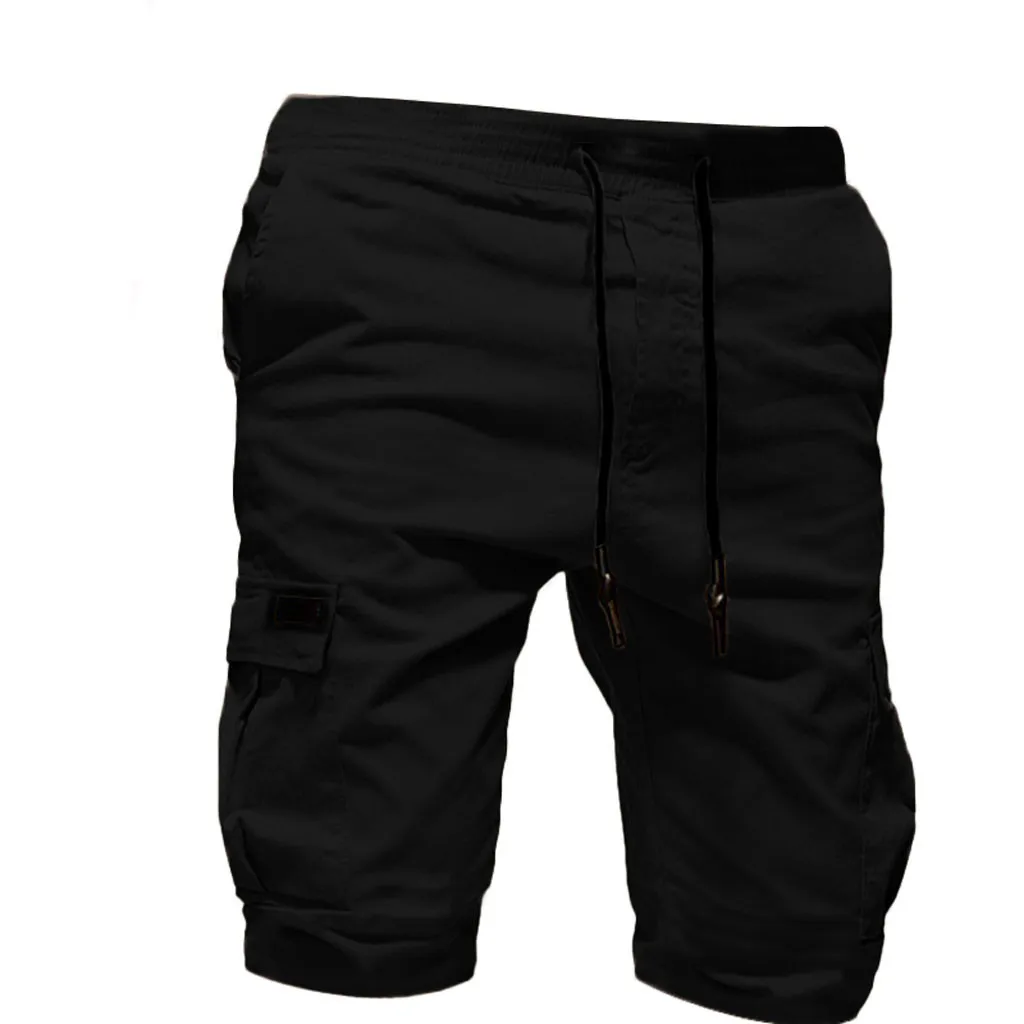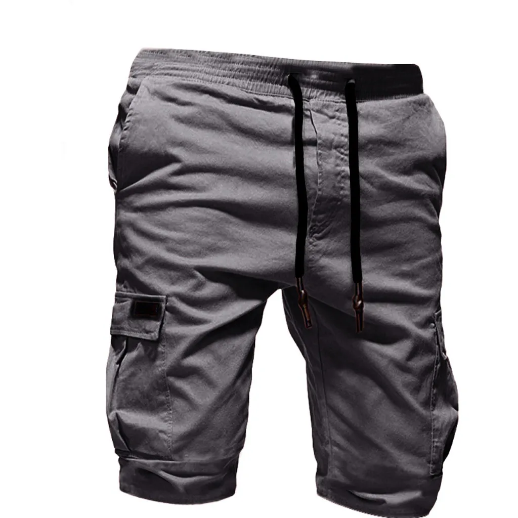 Модные мужские повседневные однотонные бандажные спортивные шорты с несколькими карманами удобные летние однотонные бандажные шорты 02 *