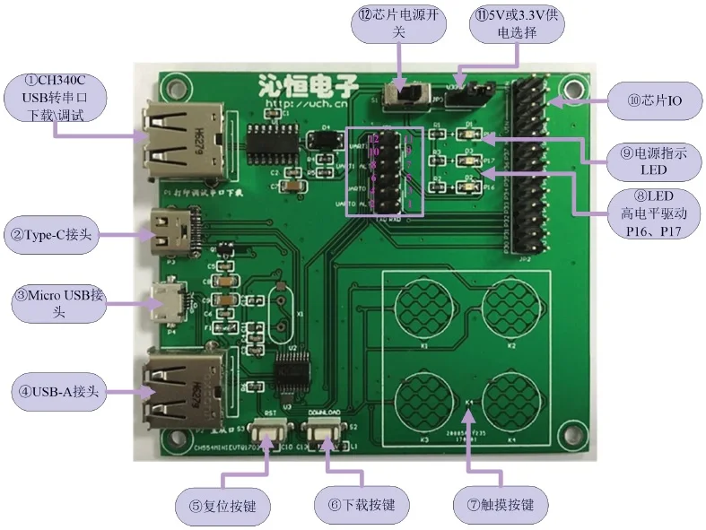 CH554 оснащен 6-канальным модулем определения емкости, а режим взаимной емкости поддерживает до 15 сенсорных кнопок.